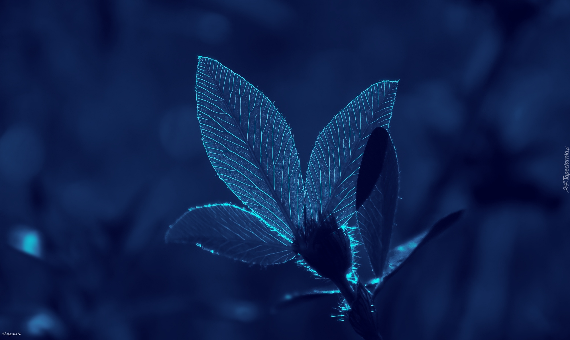 Edytor tapety: Rozświetlony liść na rozmytym tle