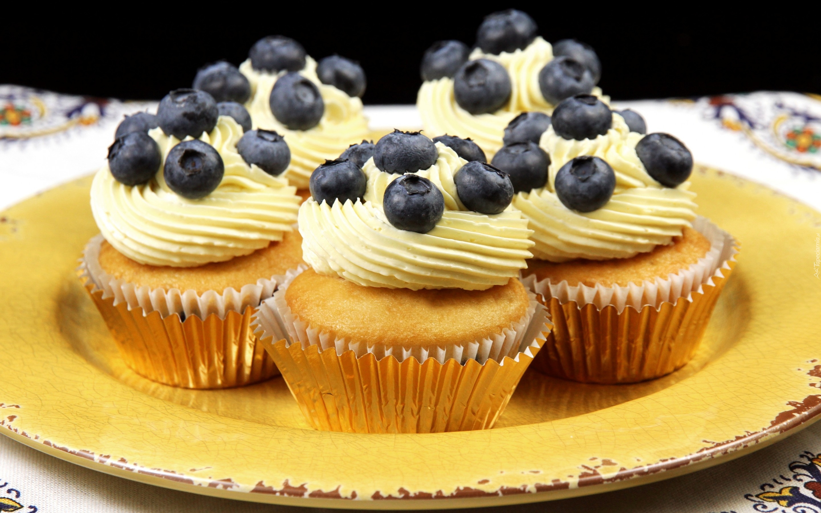 Edytor tapety: Babeczki z kremem udekorowane jagodami