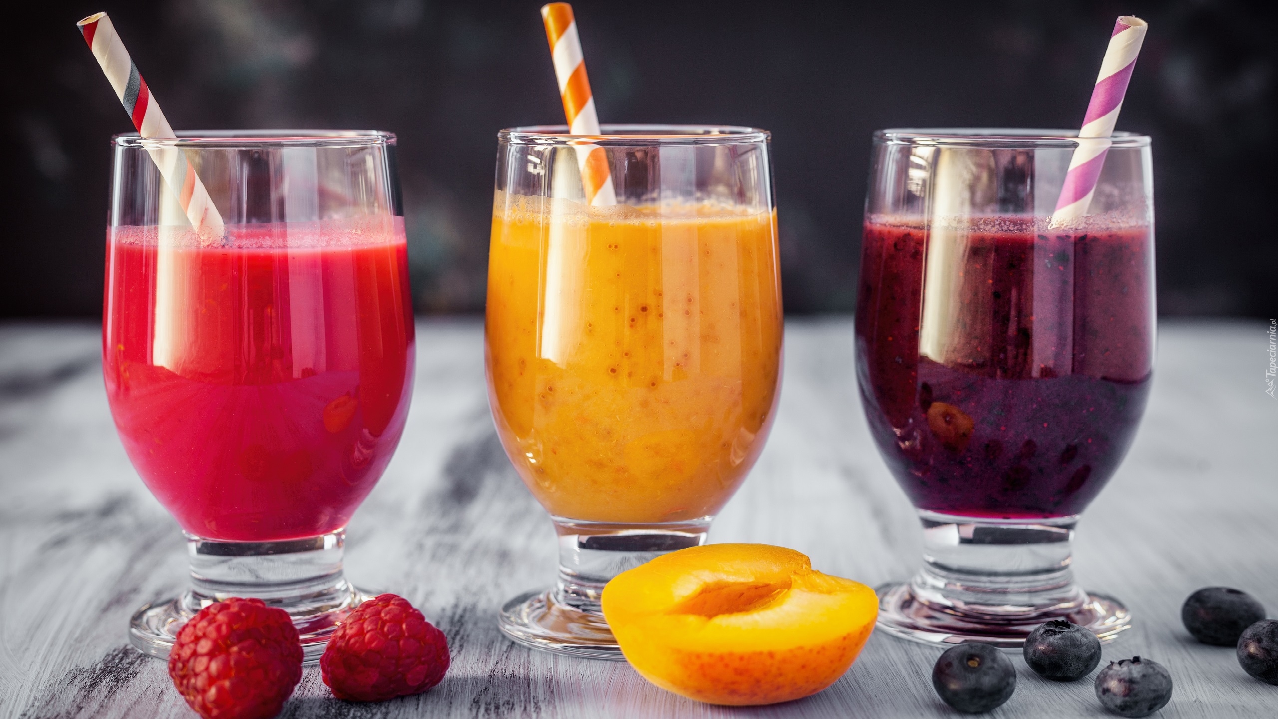 Edytor tapety: Trzy owocowe koktajle ze słomką