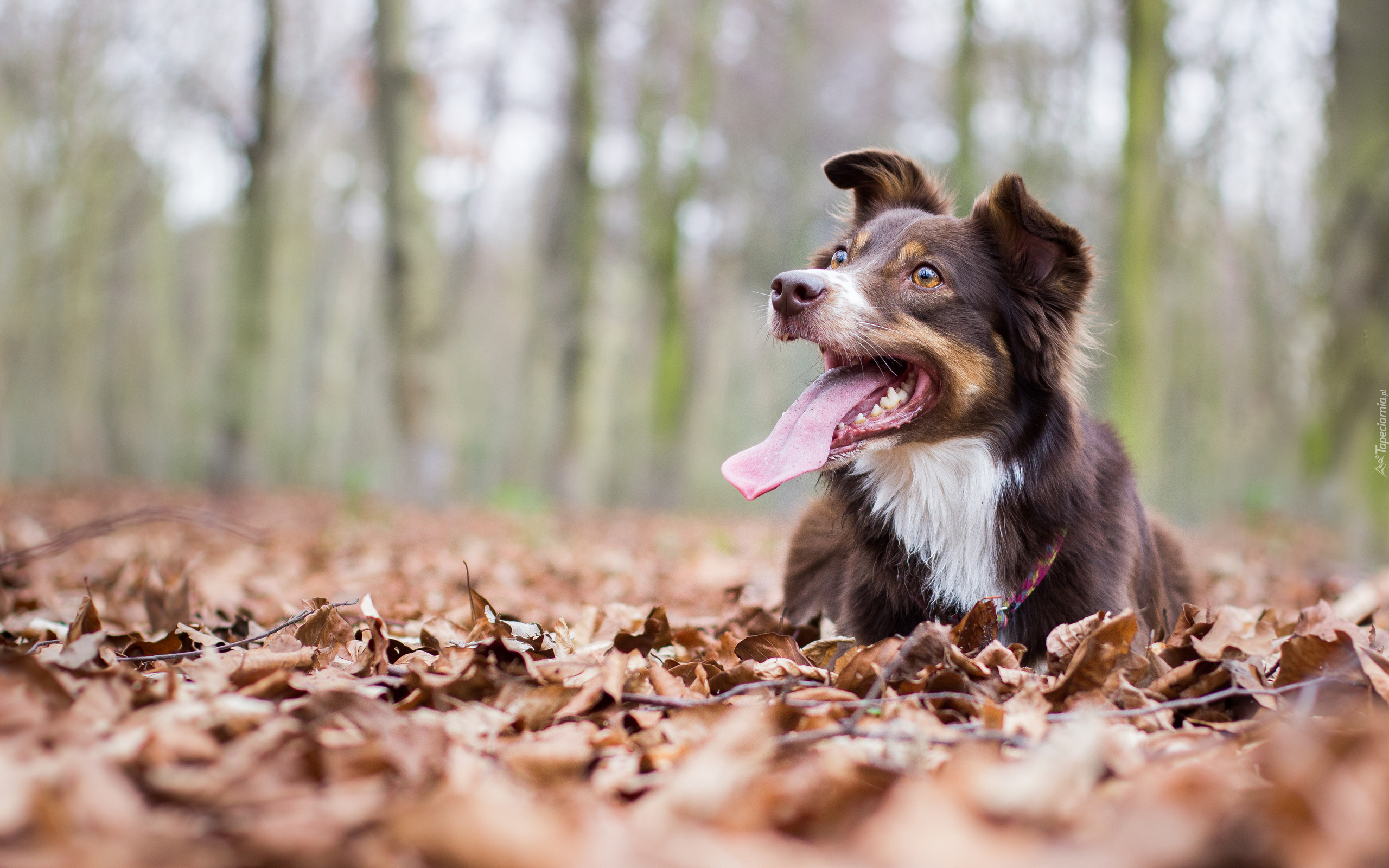Edytor tapety: Border collie siedzi na jesiennych liściach