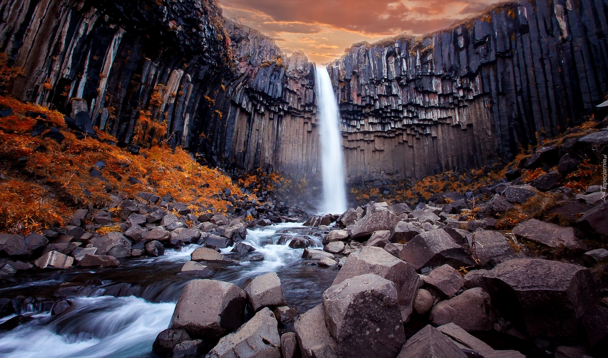 Edytor tapety: Wodospad Svartifoss w Parku Narodowym Vatnajökull w Islandii