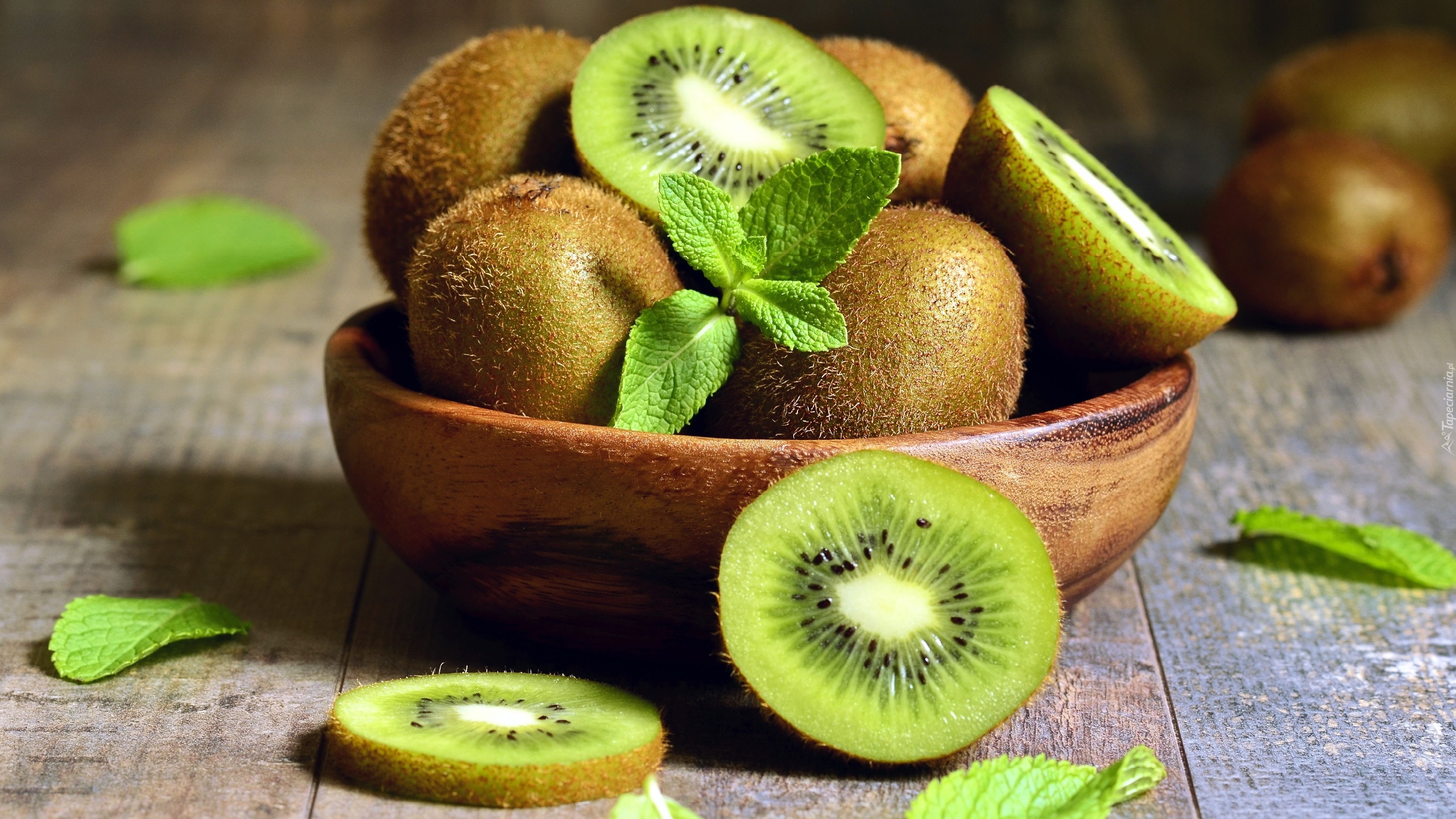Edytor tapety: Owoce kiwi w misce i na deskach