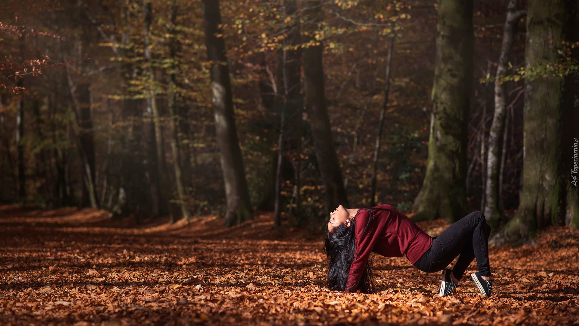 Edytor tapety: Dziewczyna tańcząca w lisciach