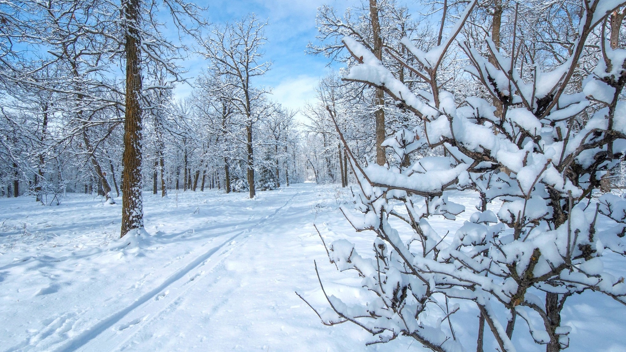 Edytor tapety: Leśna dróżka zimową porą