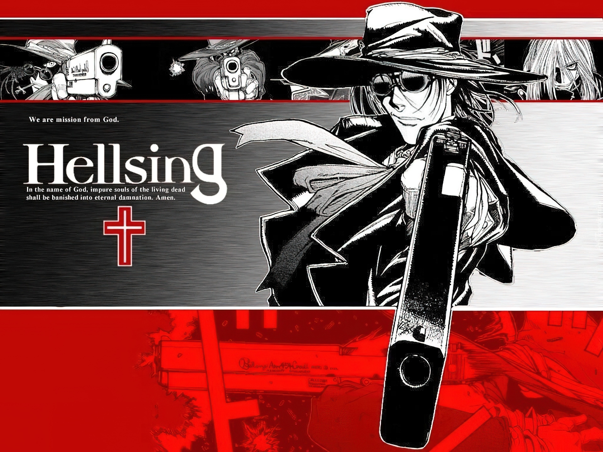Edytor tapety: Hellsing, krzyż, pistolet, postać