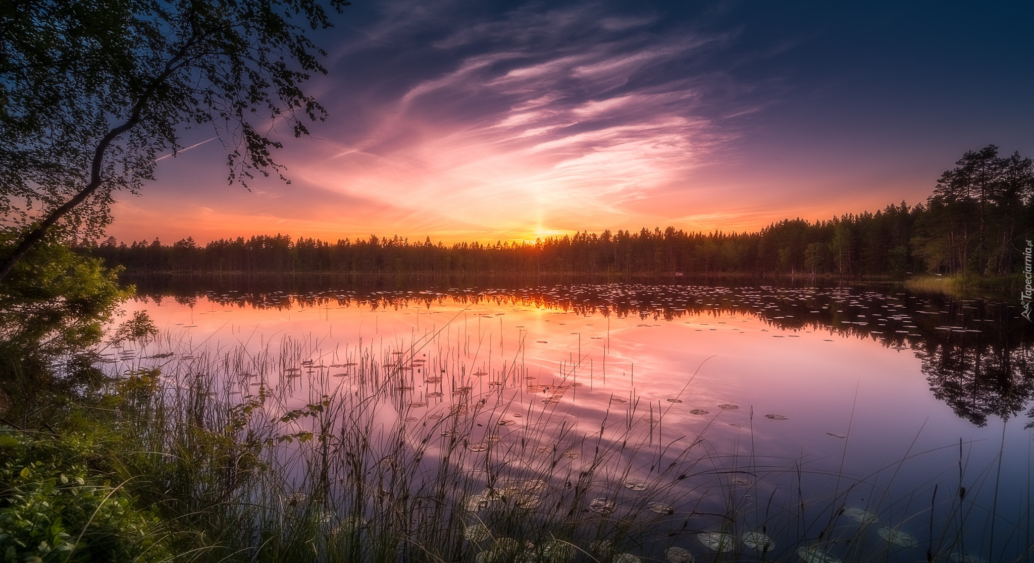 Edytor tapety: Jezioro Siikajärvi w Finlandii w blasku zachodzącego słońca