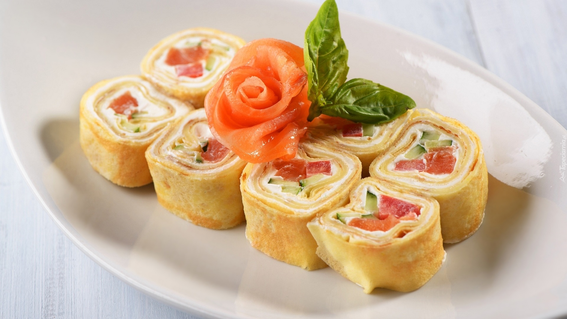 Edytor tapety: Naleśniki z łososiem na półmisku