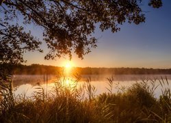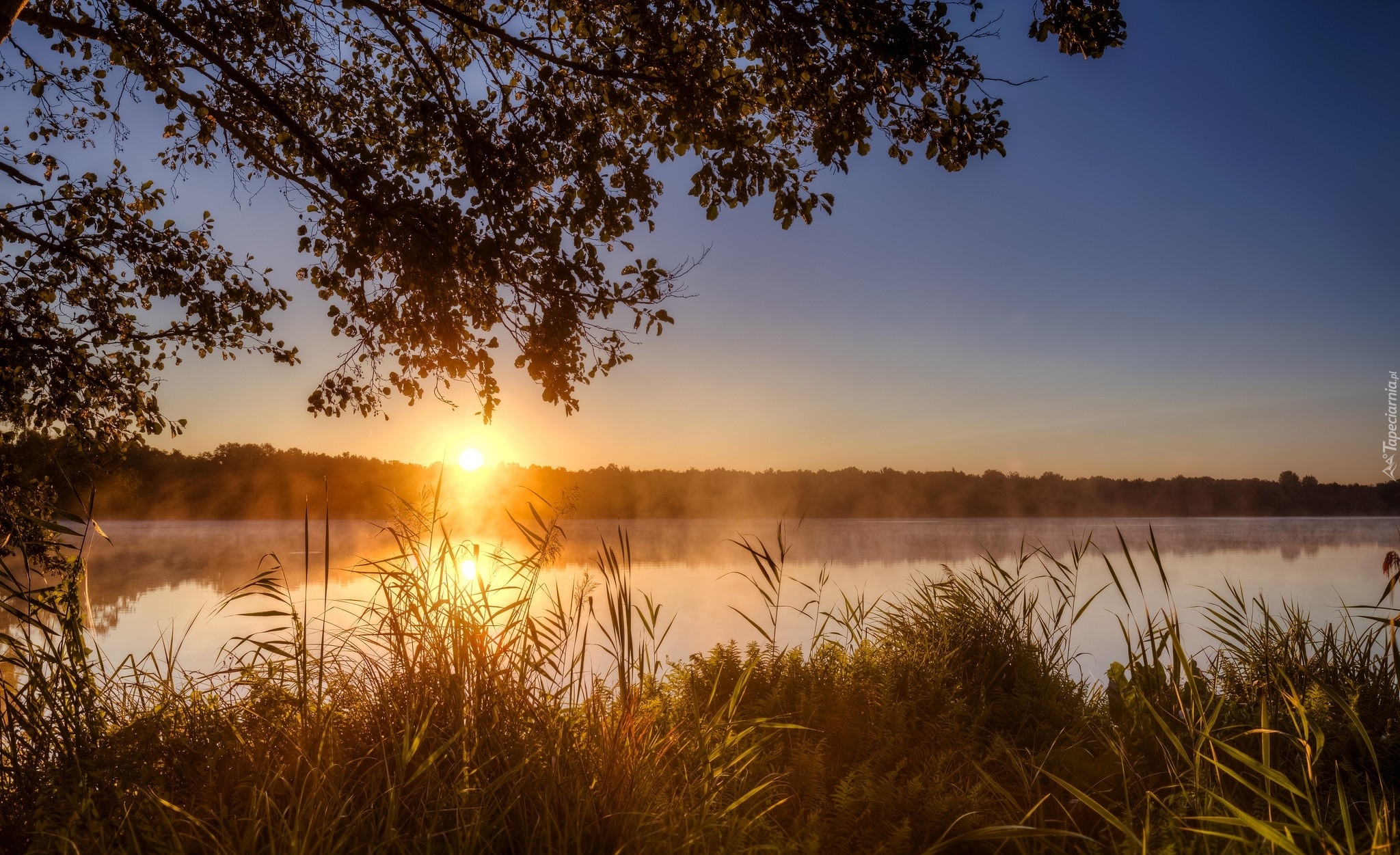 Edytor tapety: Wschód słońca nad jeziorem
