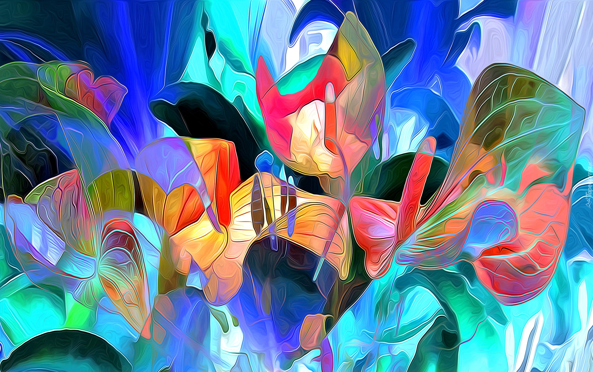 Edytor tapety: Kwiaty z liśćmi w grafice fractalius