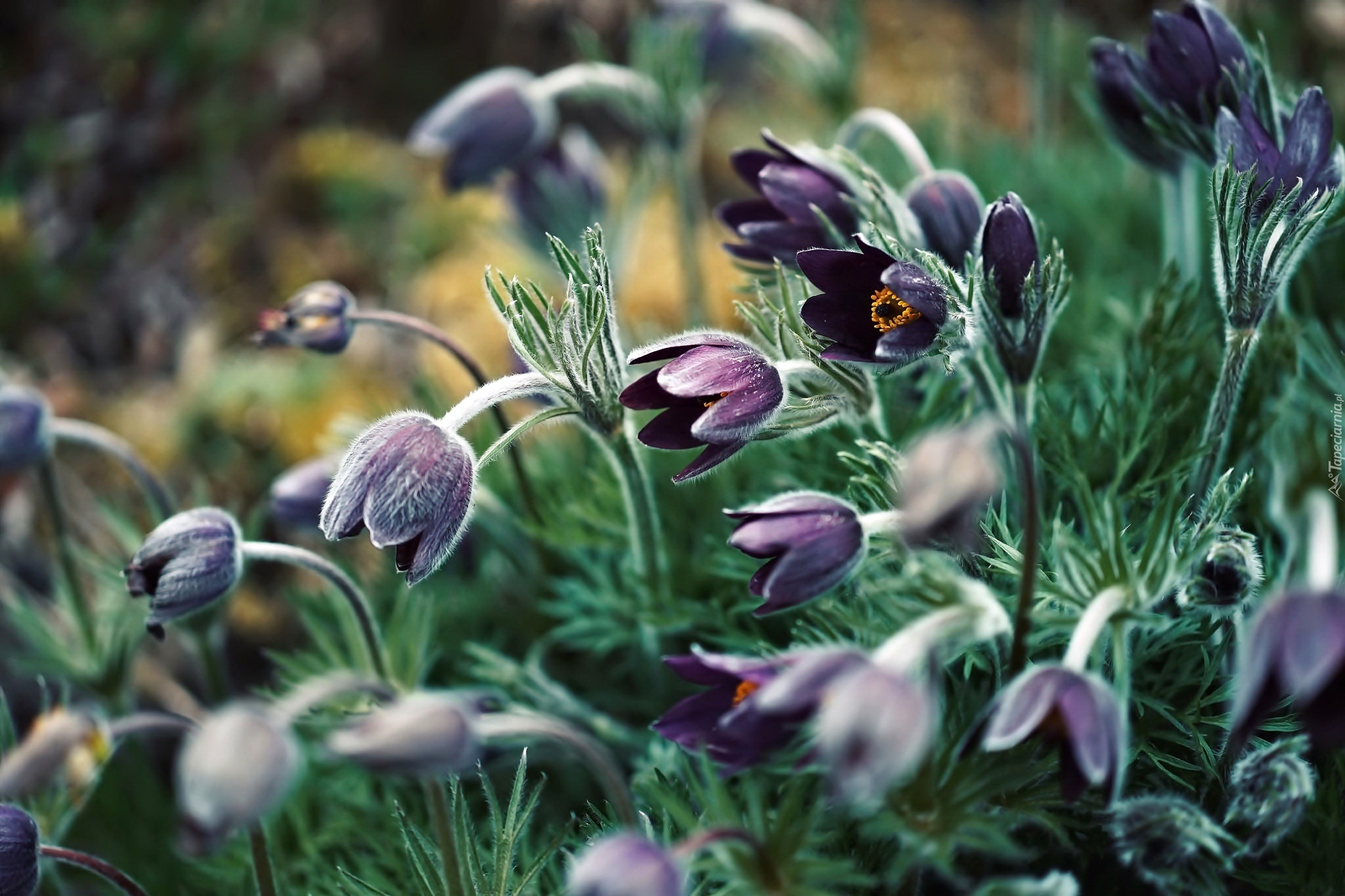 Edytor tapety: Fioletowe sasanki w rozmyciu