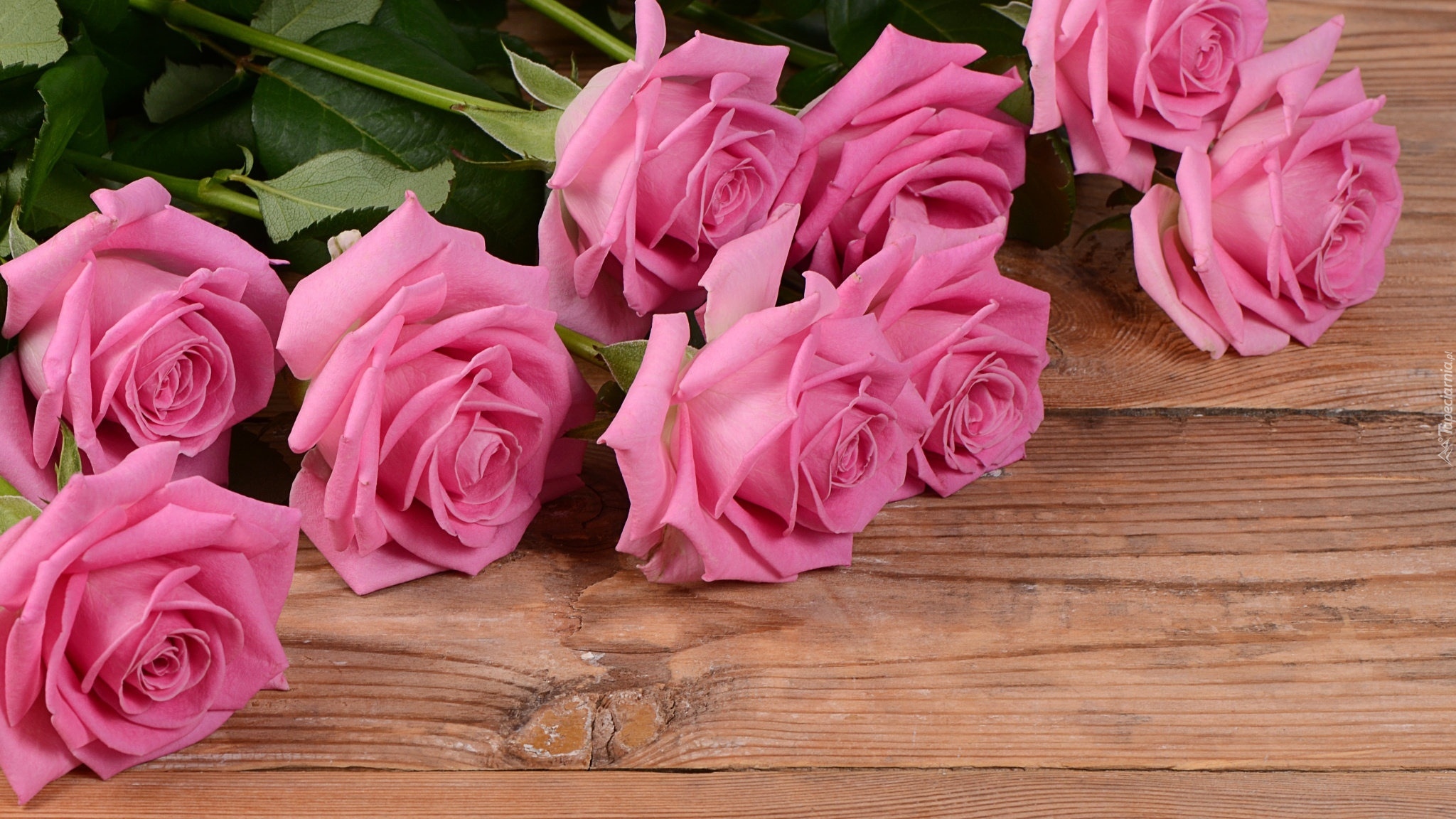 Edytor tapety: Różowe róże położone na deskach