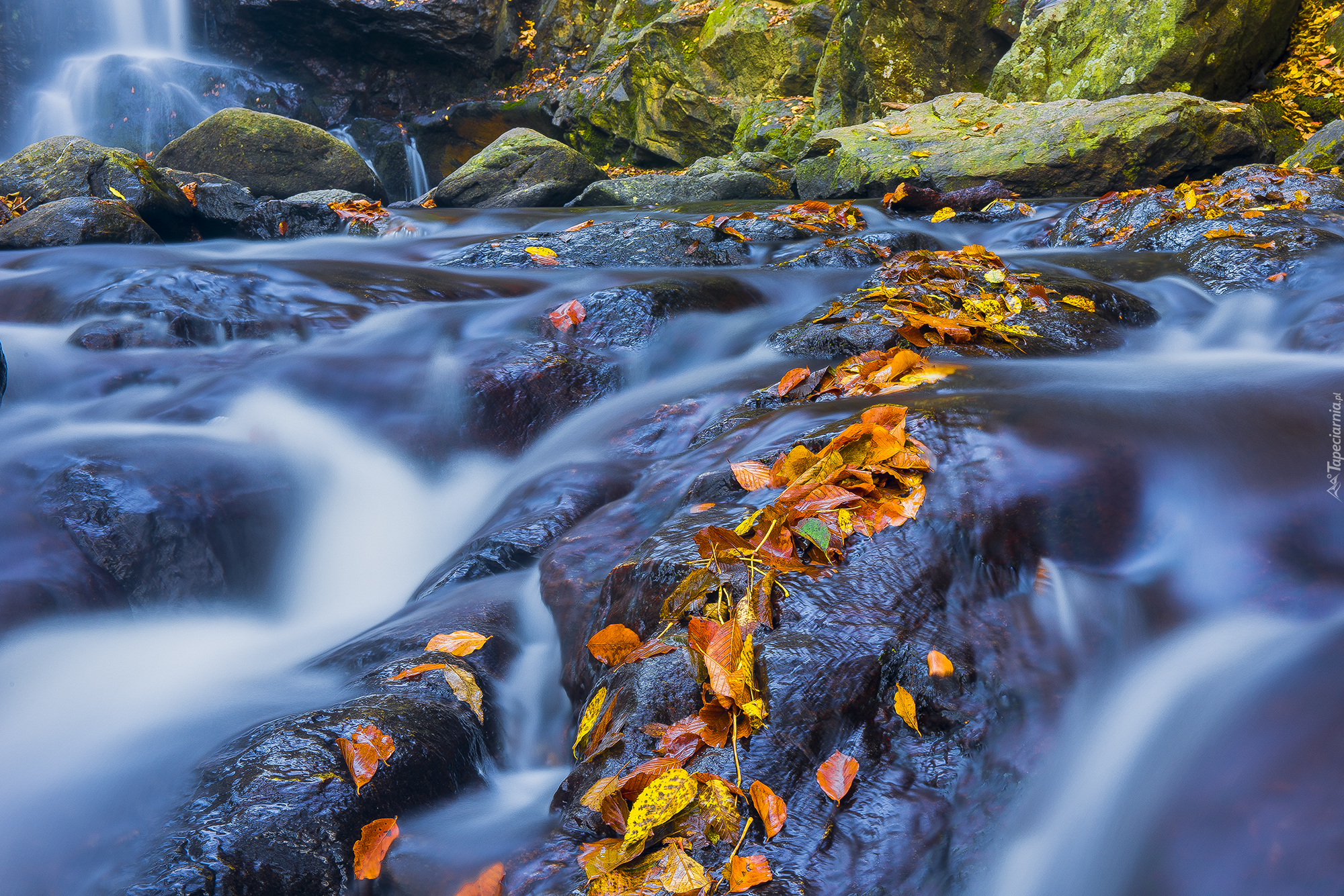 Edytor tapety: Jesienne liście na kamieniach w rzece