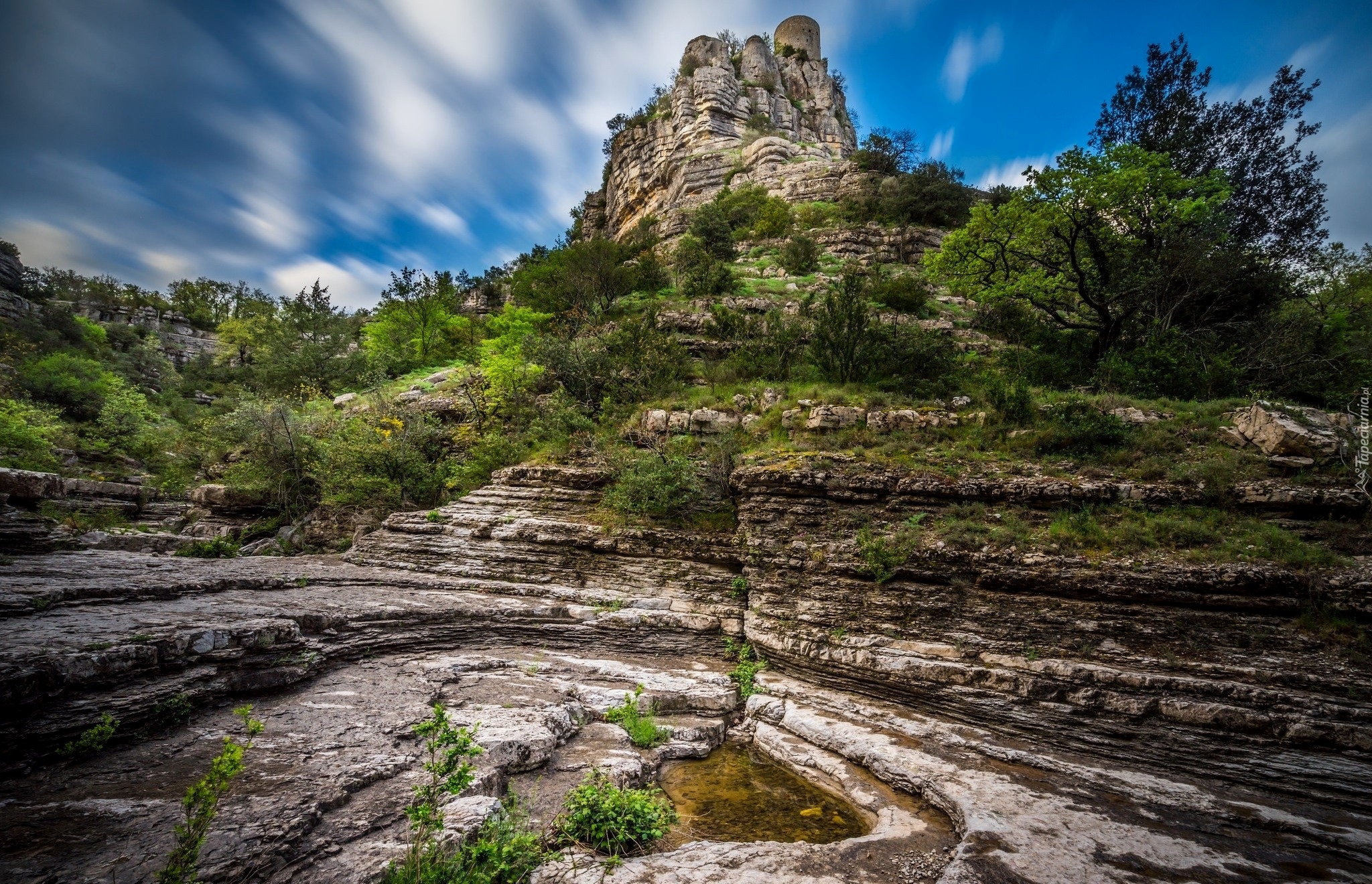 Edytor tapety: Formacje skalne porośnięte roślinami