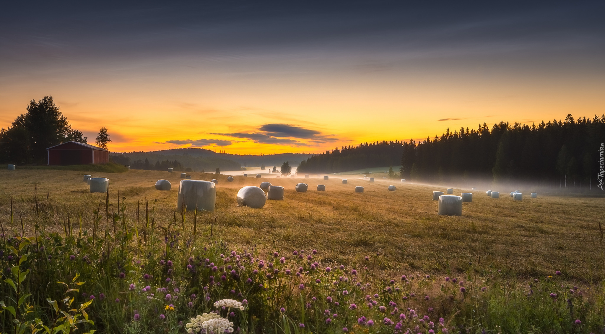 Edytor tapety: Pole w fińskiej gminie Ruovesi o zachodzie słońca