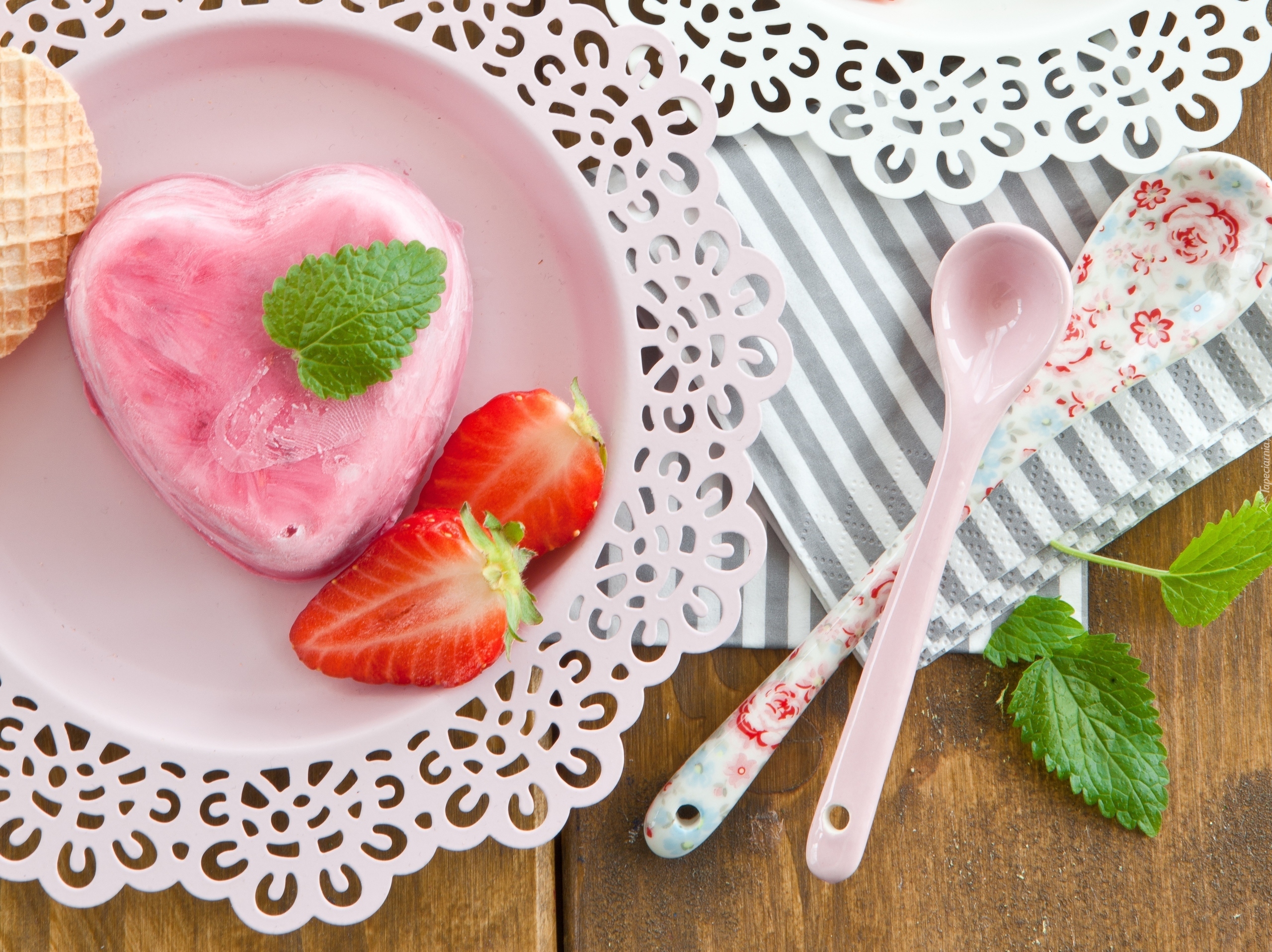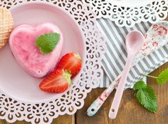 Edytor tapety: Lód w kształcie serca obok truskawek