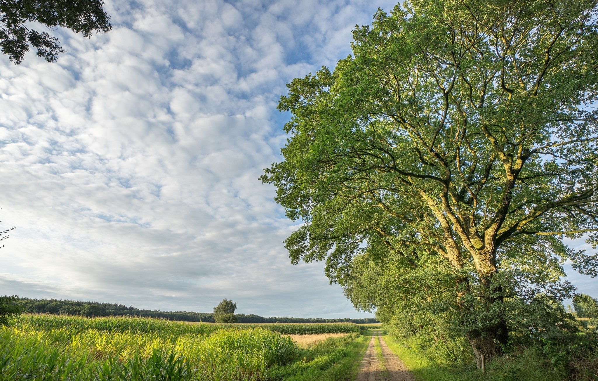 Edytor tapety: Drzewa przy polnej drodze