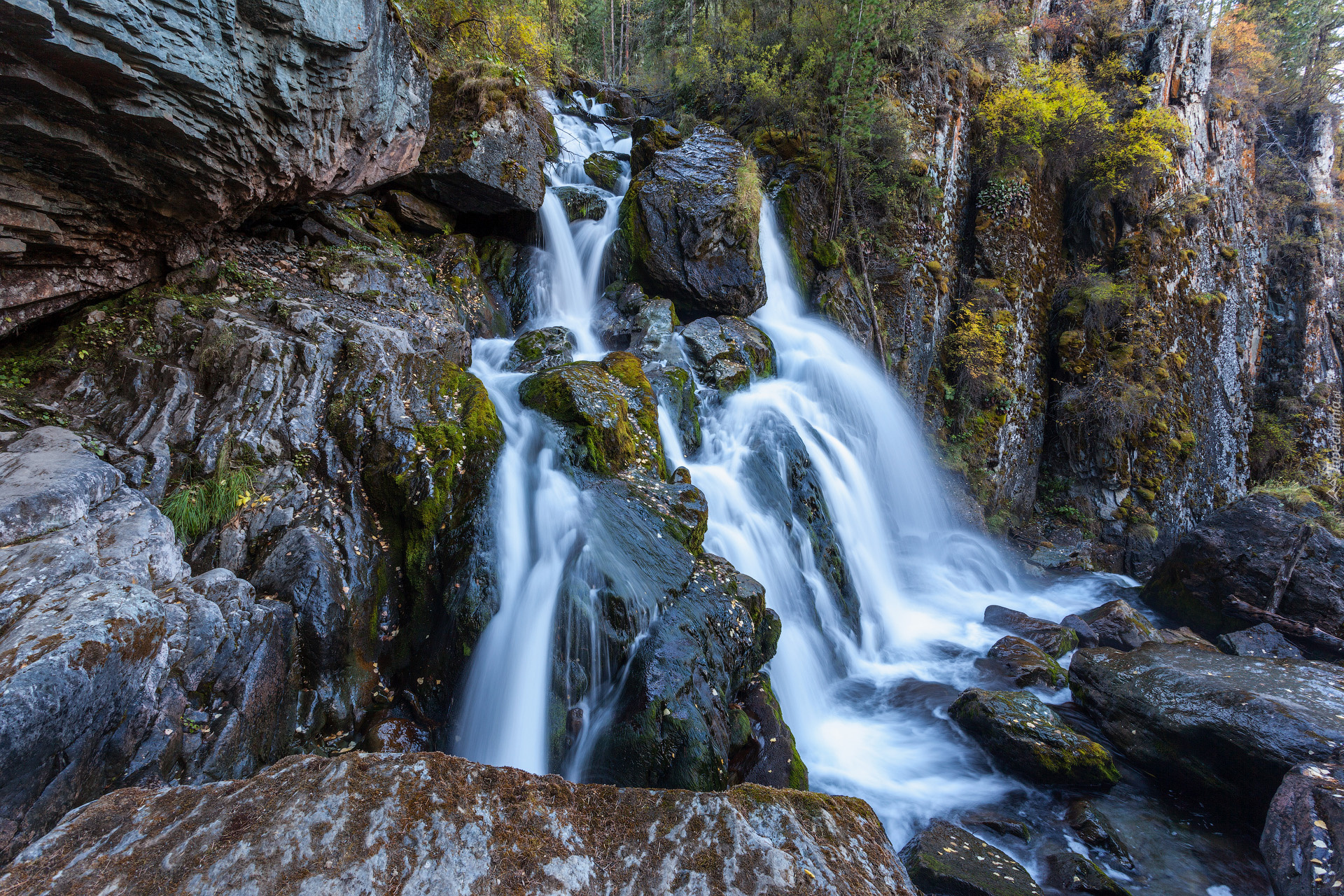 Edytor tapety: Skały z wodospadem
