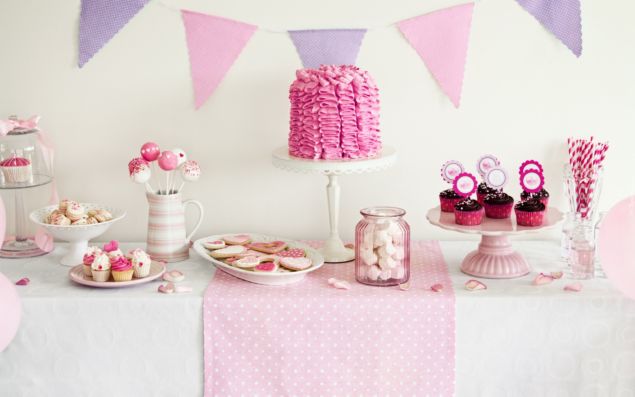Edytor tapety: Ciasteczka, tort i babeczki na stole