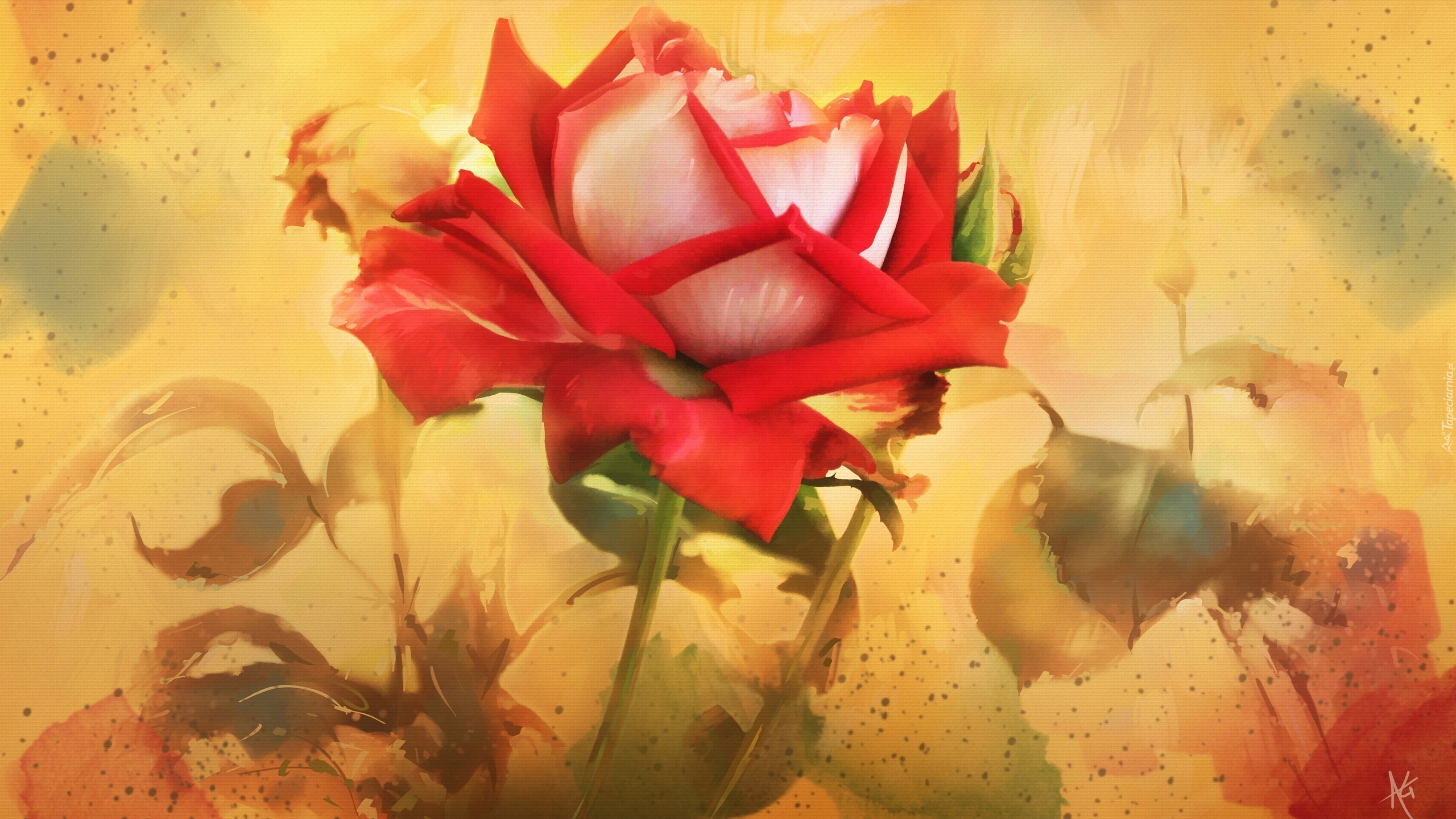 Edytor tapety: Czerwona róża na obrazie Alberto Guilléna