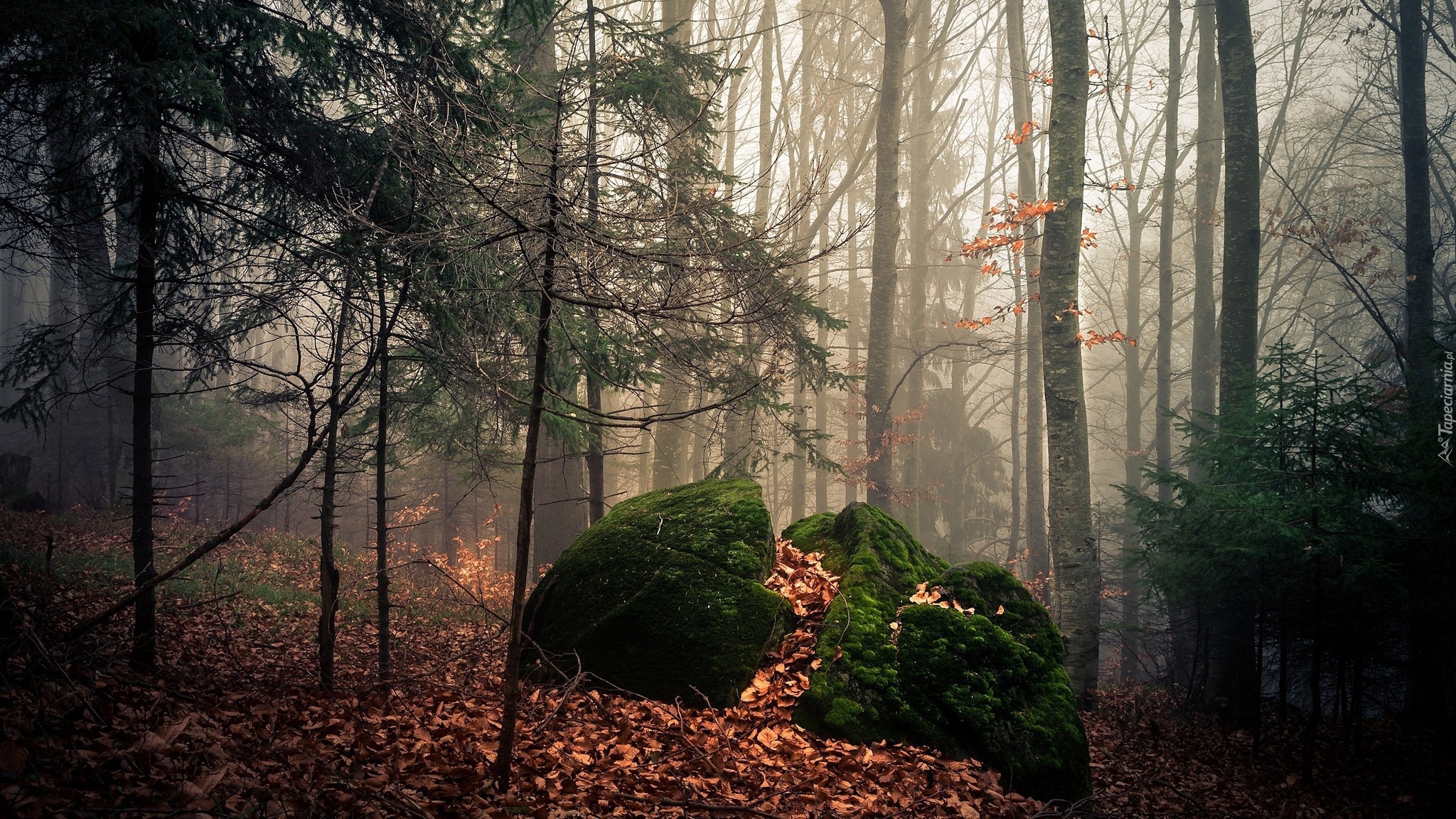 Edytor tapety: Omszała skała w lesie