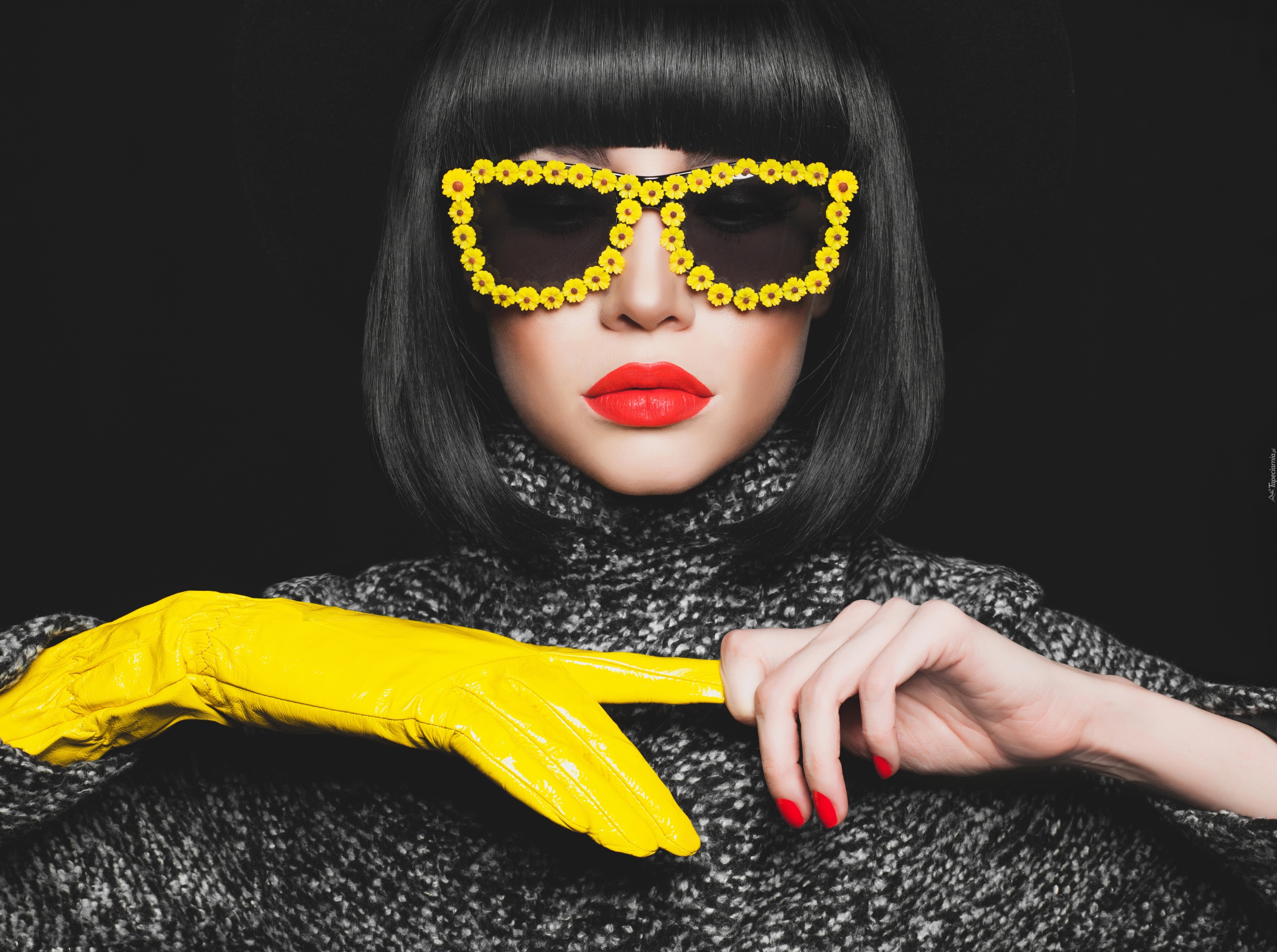 Edytor tapety: Ciemnowłosa kobieta w okularach przeciwsłonecznych