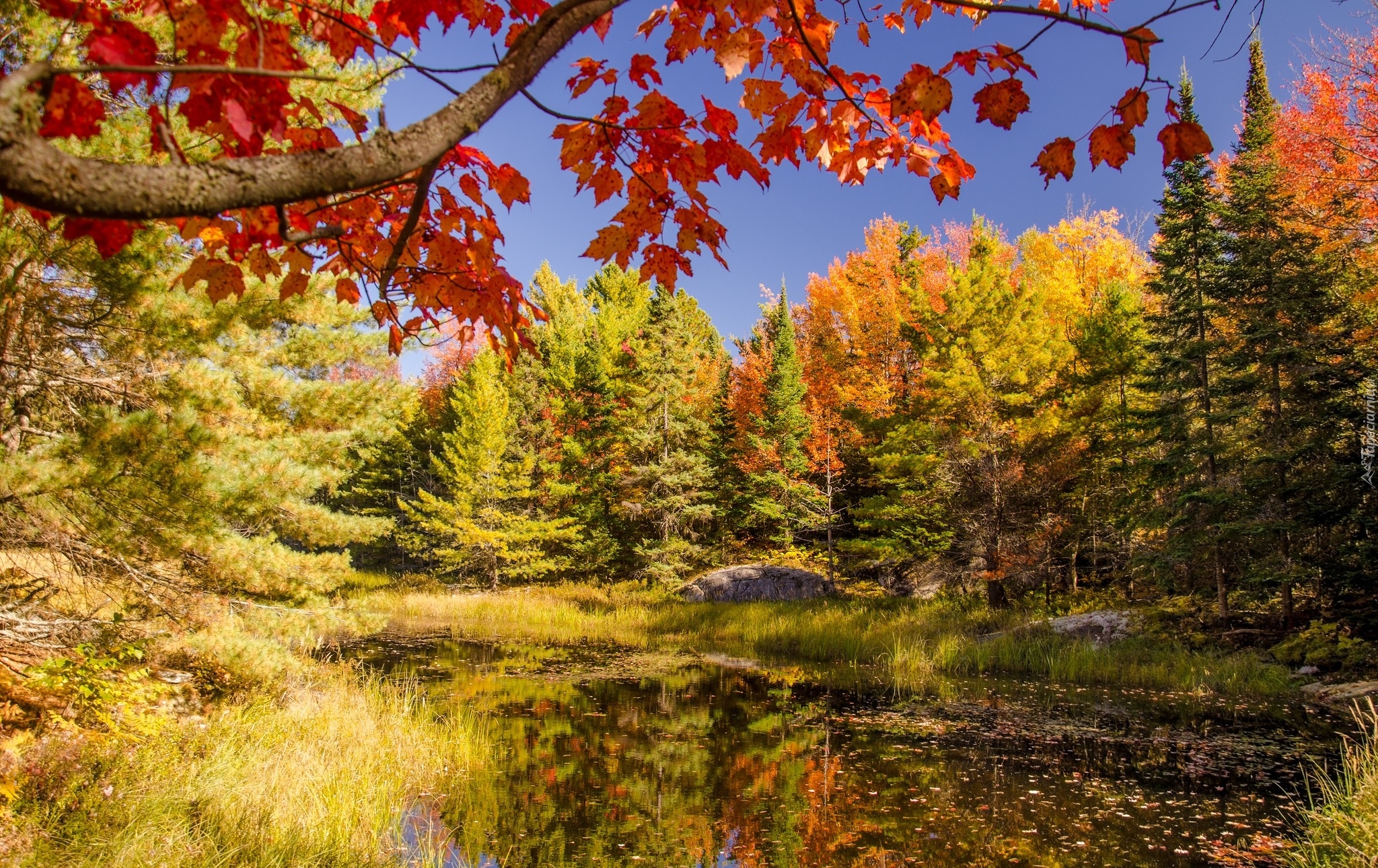 Edytor tapety: Staw w lesie w okolicy góry Koyasan jesienią