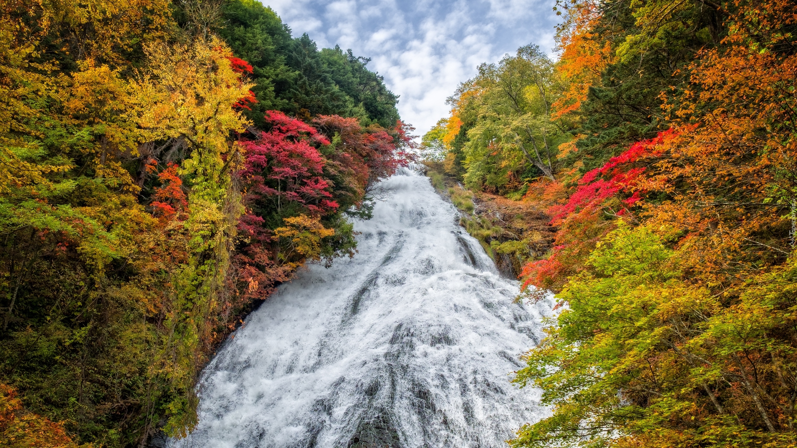 Edytor tapety: Wodospad Yudaki w japońskim Parku Narodowym Nikko jesienią