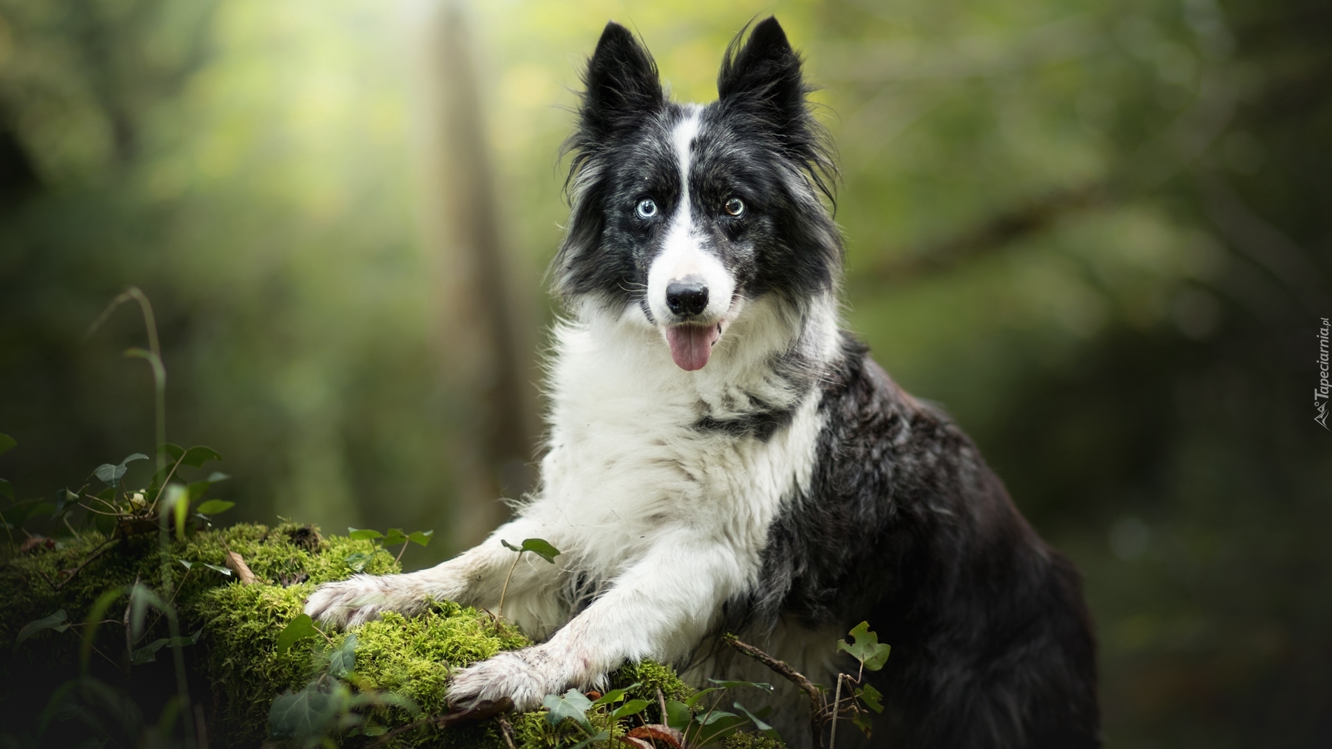 Edytor tapety: Border collie z łapkami na mchu