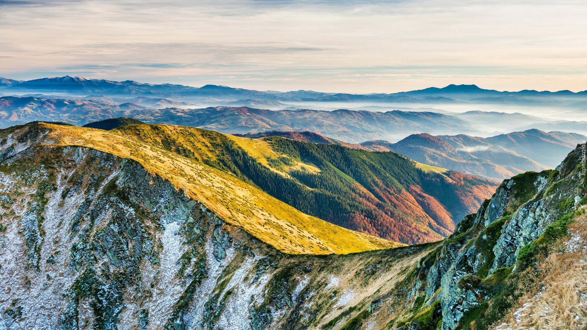 Edytor tapety: Zamglone szczyty gór