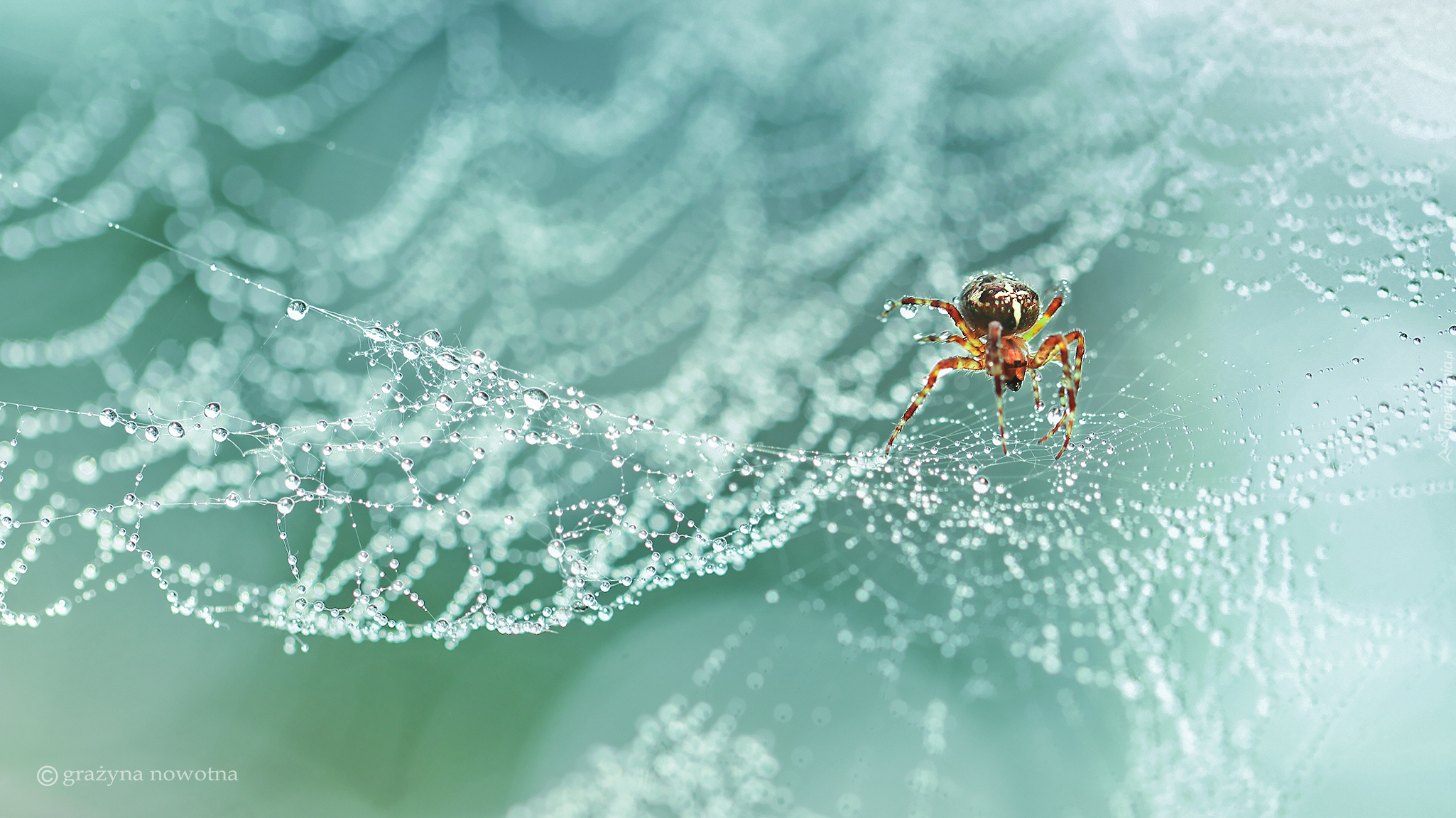 Edytor tapety: Krzyżak ogrodowy na pajęczynie w kroplach wody