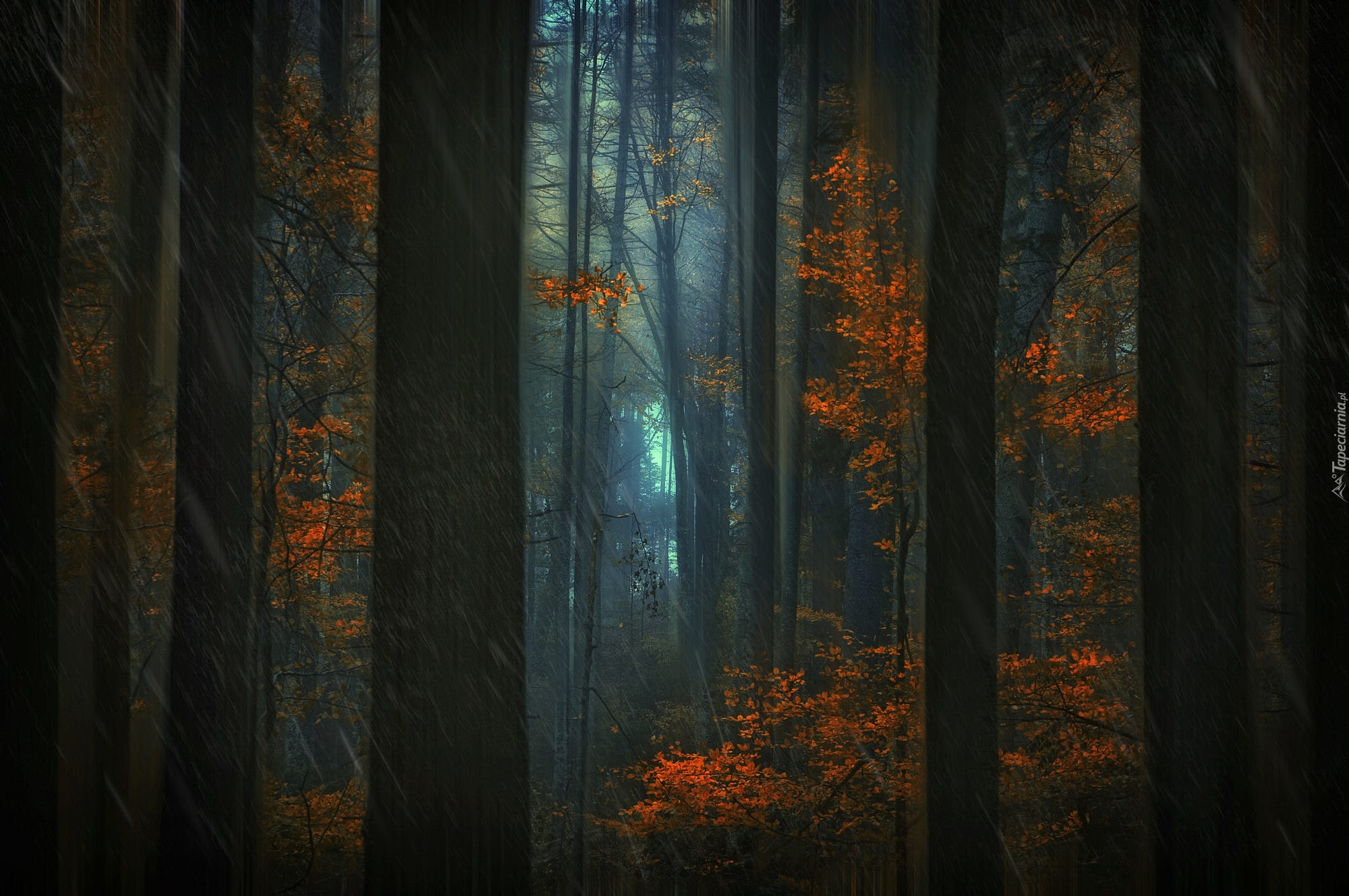 Edytor tapety: Deszczowy jesienny las