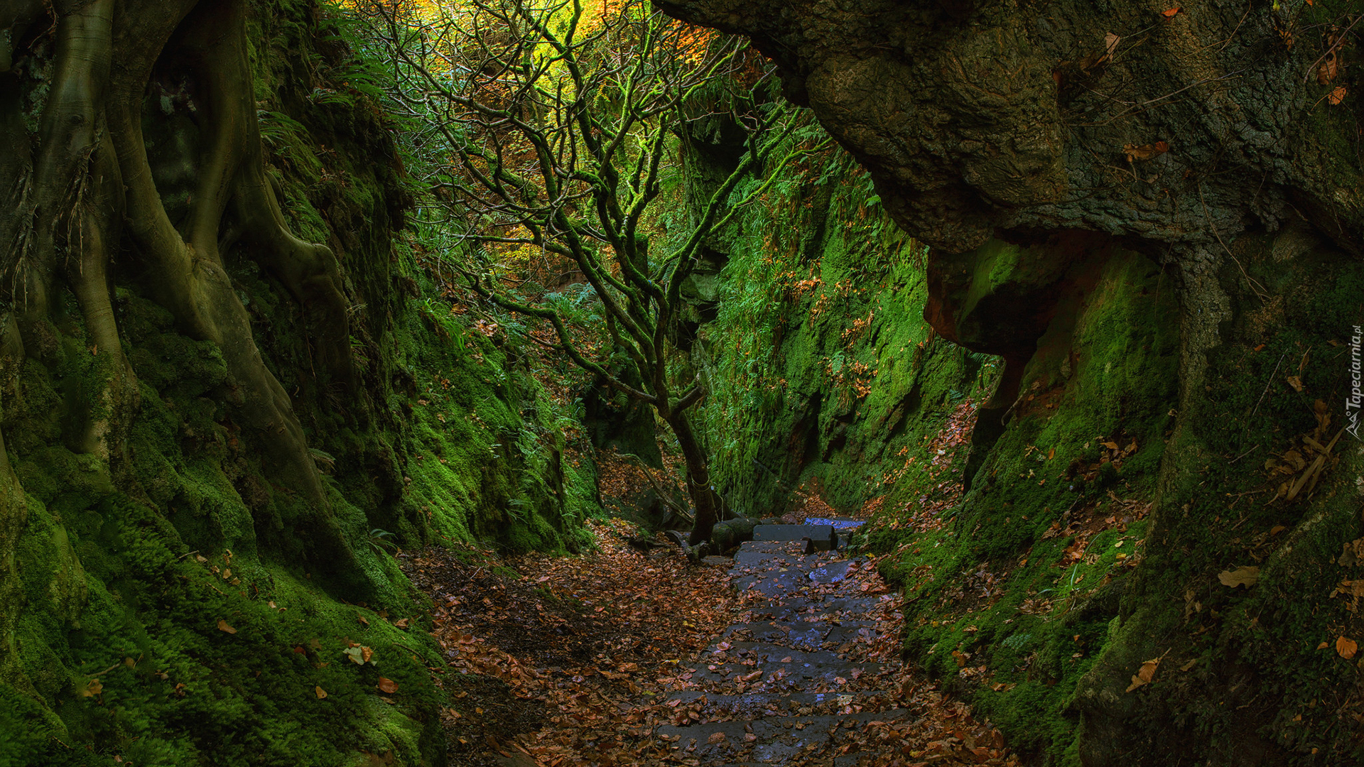 Edytor tapety: Diabelskie schody w wąwozie Finnich Glen w Szkocji
