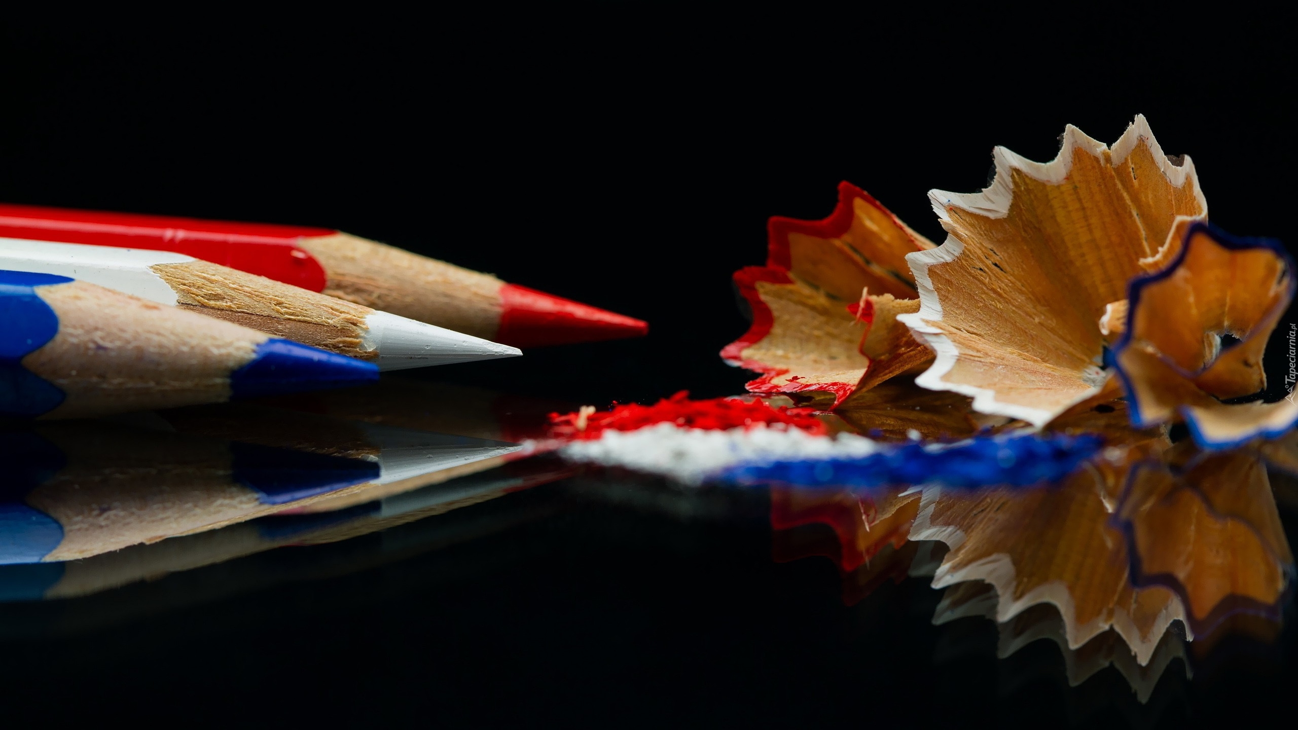 Edytor tapety: Kolorowe zatemperowane kredki w odbiciu