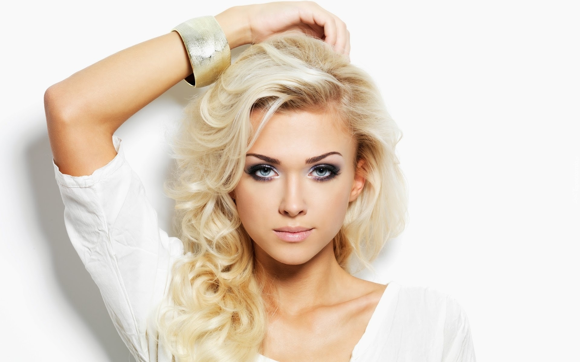 Edytor tapety: Blondynka z bransoletką na ręku