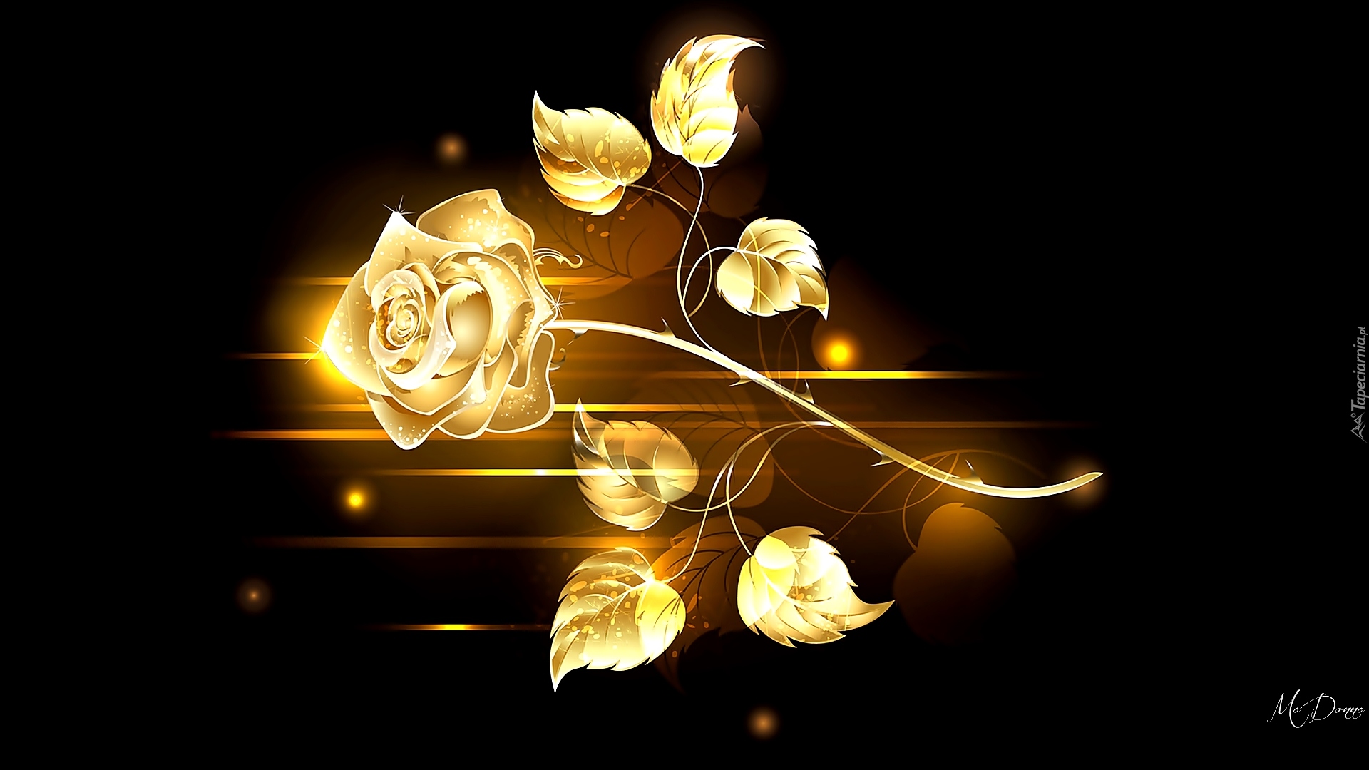 Edytor tapety: Złota róża z listkami w grafice