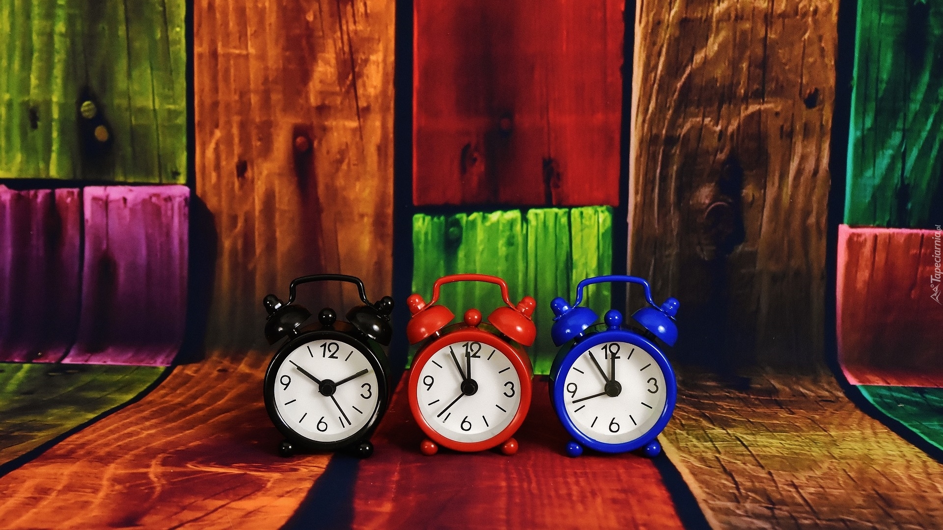 Edytor tapety: Kolorowe budziki na deskach
