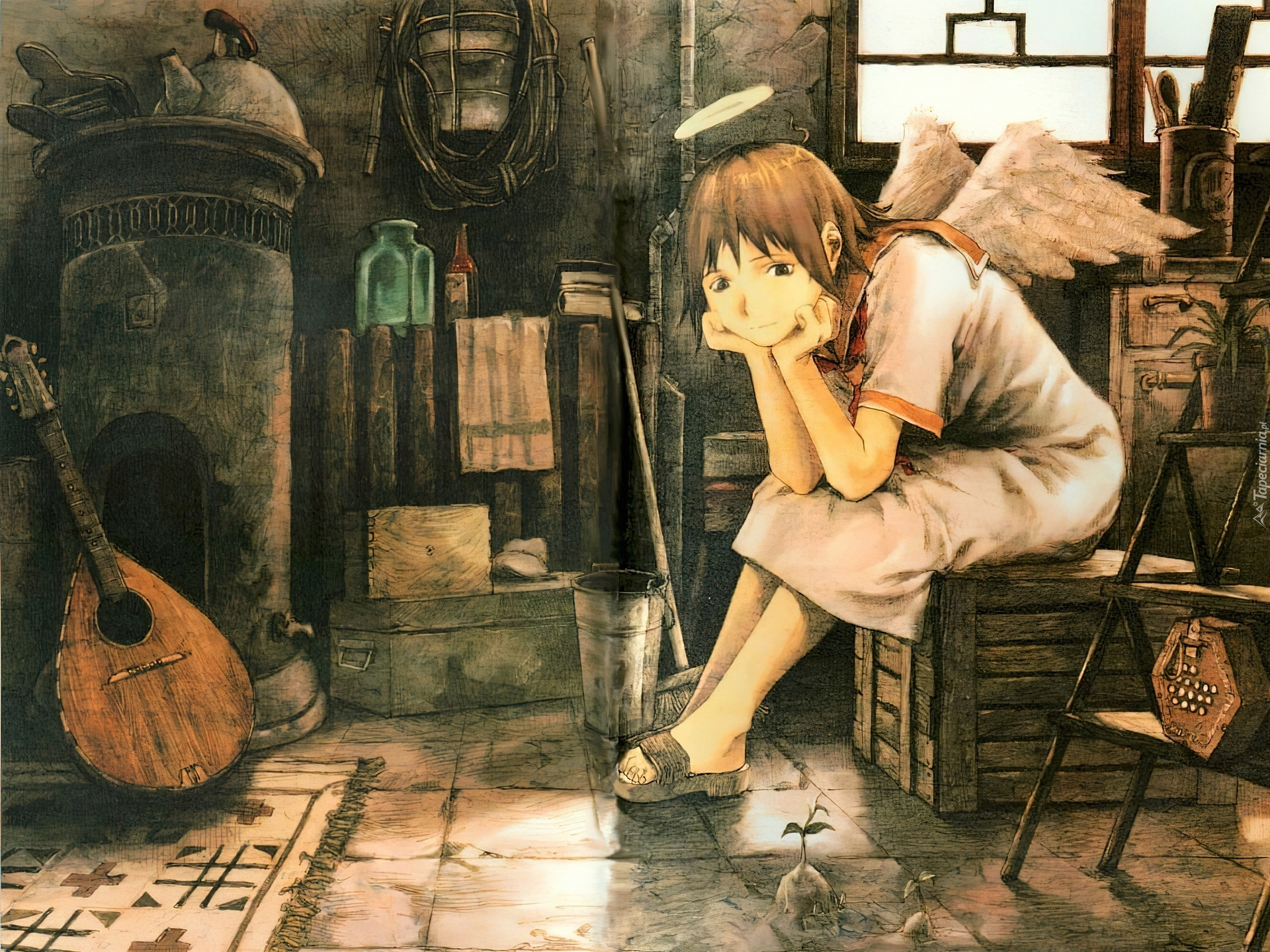 Edytor tapety: Haibane Renmei, mandolina, anioł