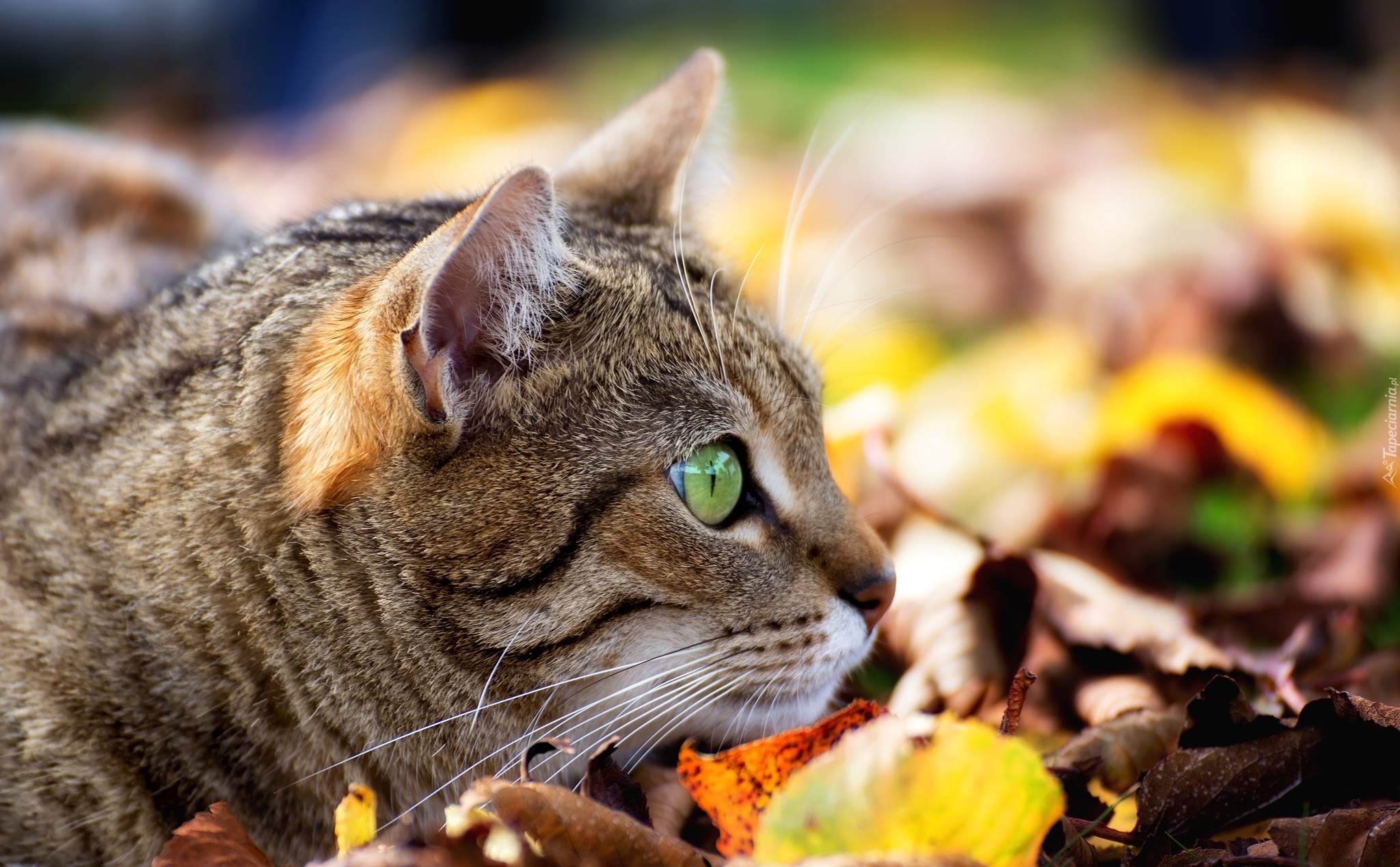 Edytor tapety: Kot w jesiennych liściach