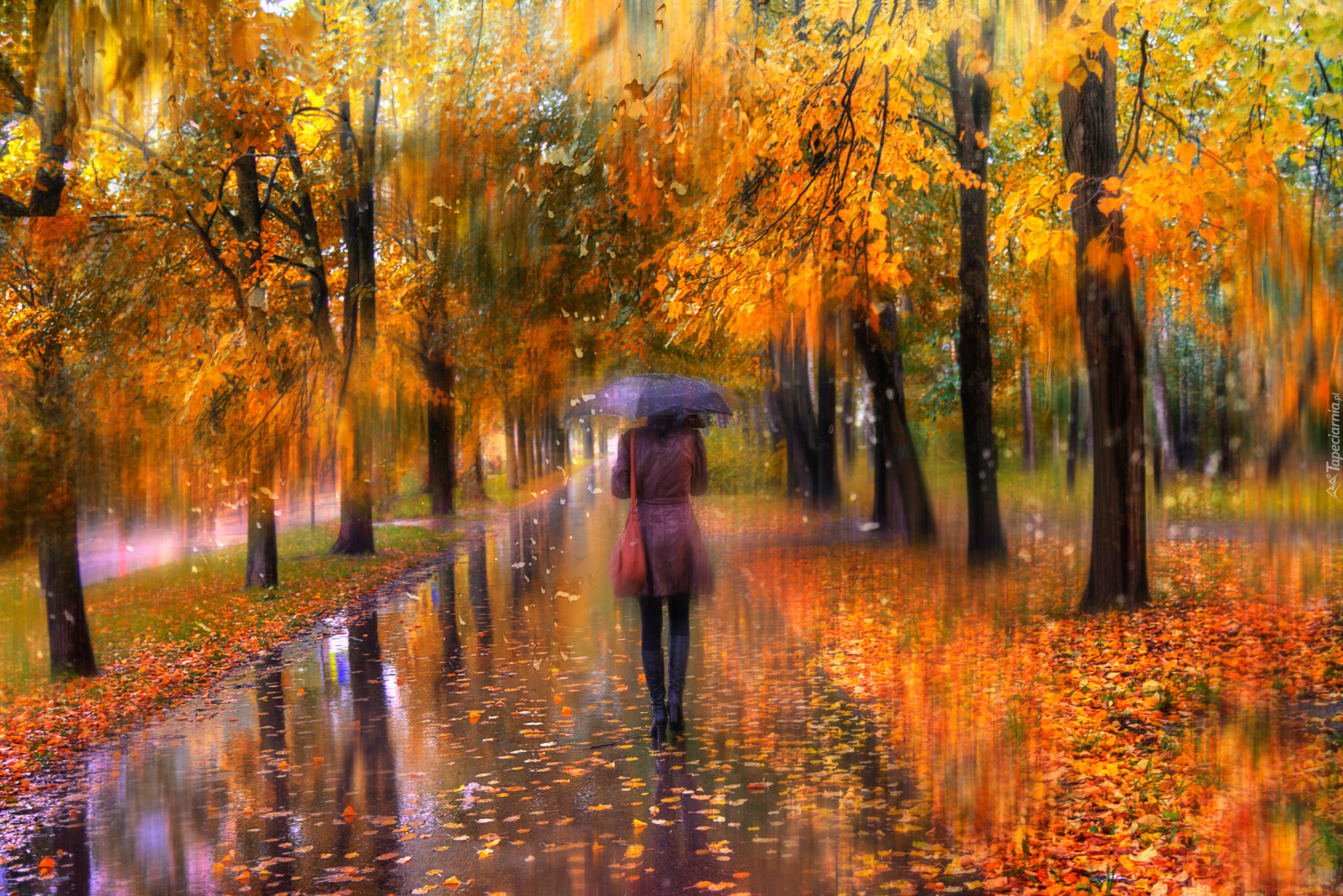 Edytor tapety: Spacer w deszczu