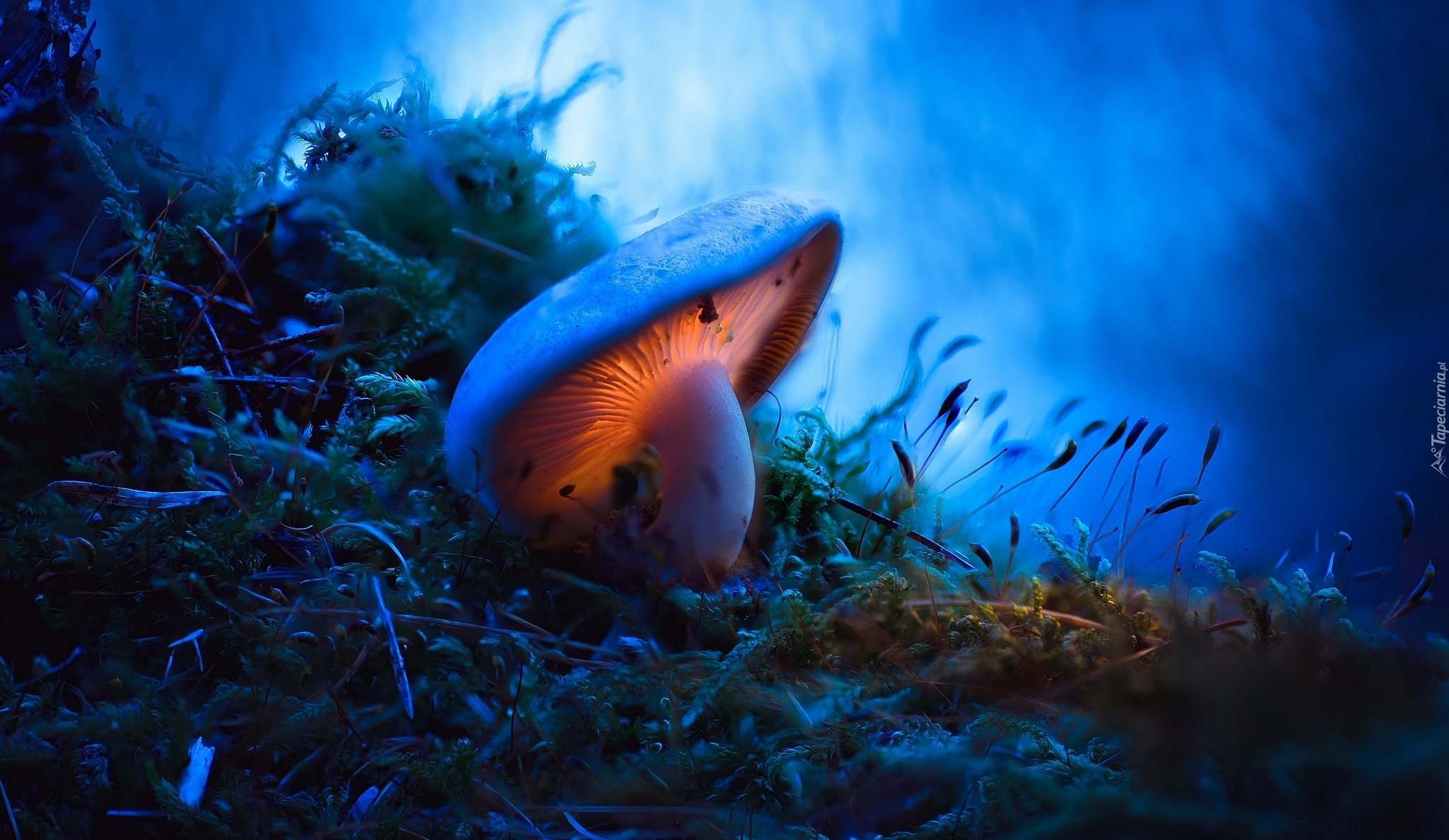 Edytor tapety: Podświetlony grzyb w makro