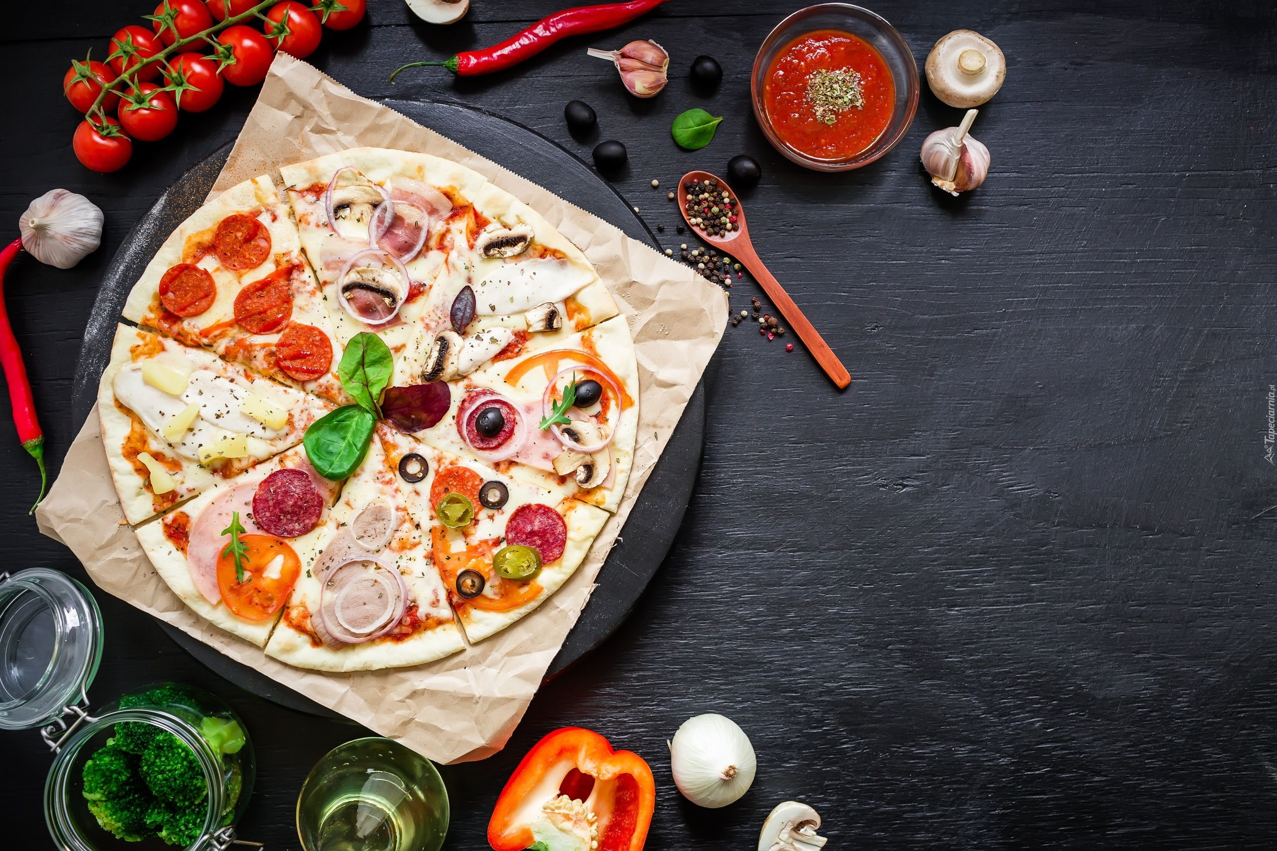 Edytor tapety: Pizza z wędliną i pieczarkami