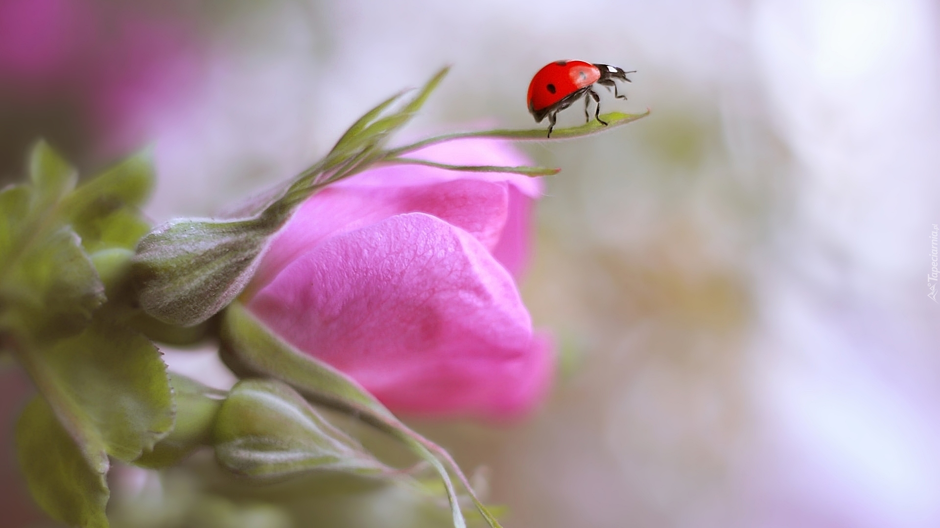 Edytor tapety: Biedronka na pąku róży