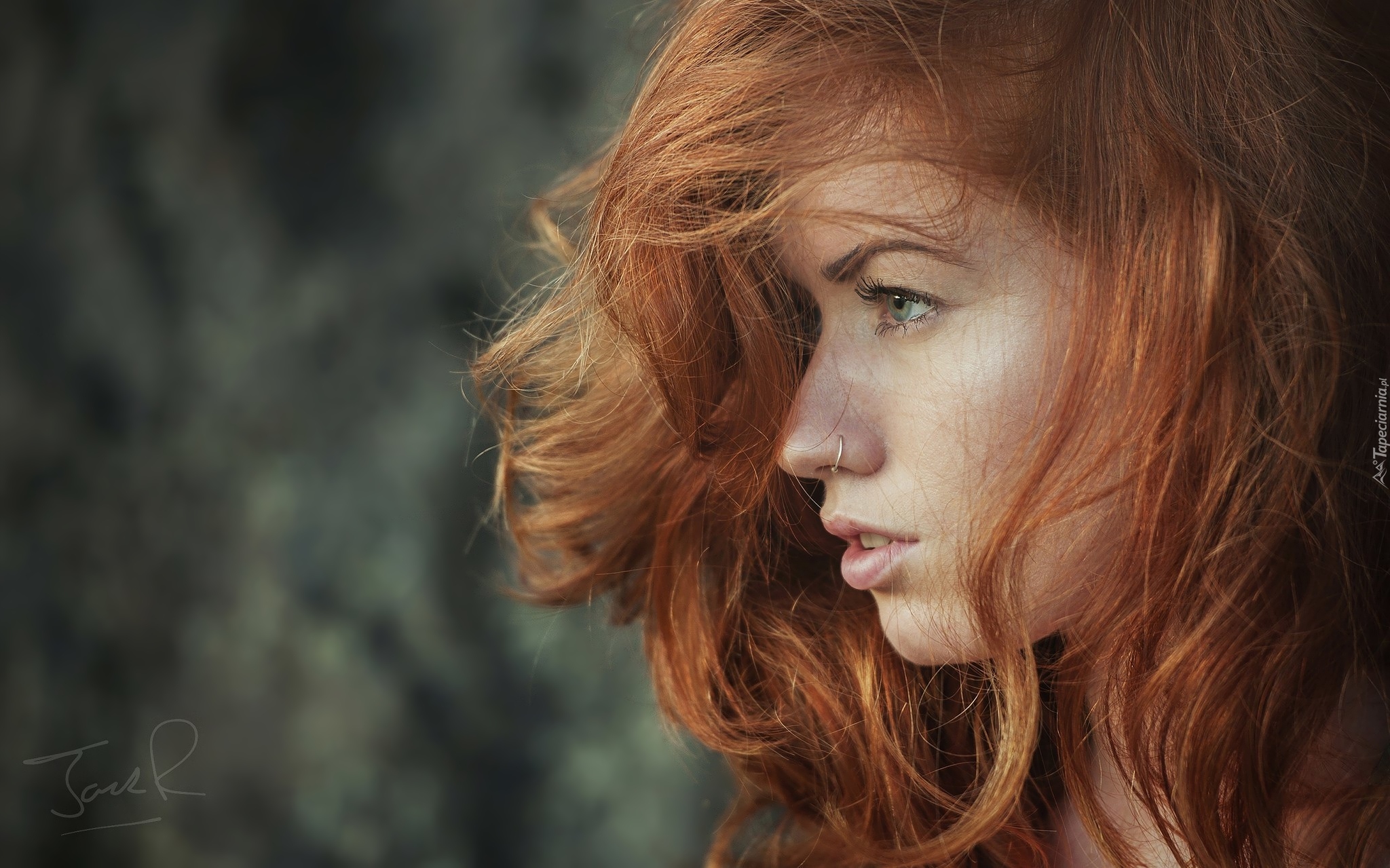 Edytor tapety: Rudowłosa dziewczyna z kolczykiem w nosie