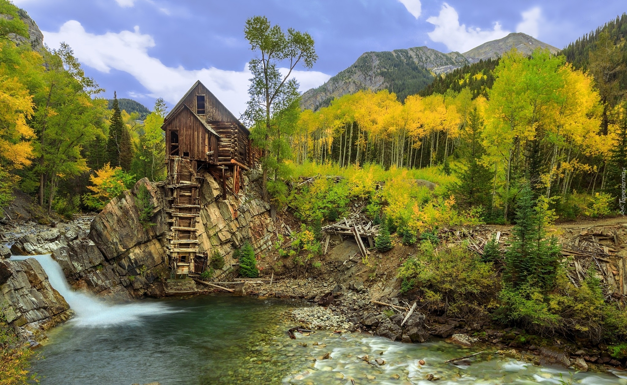 Edytor tapety: Kryształowy Młyn nad rzeką Crystal River w Kolorado