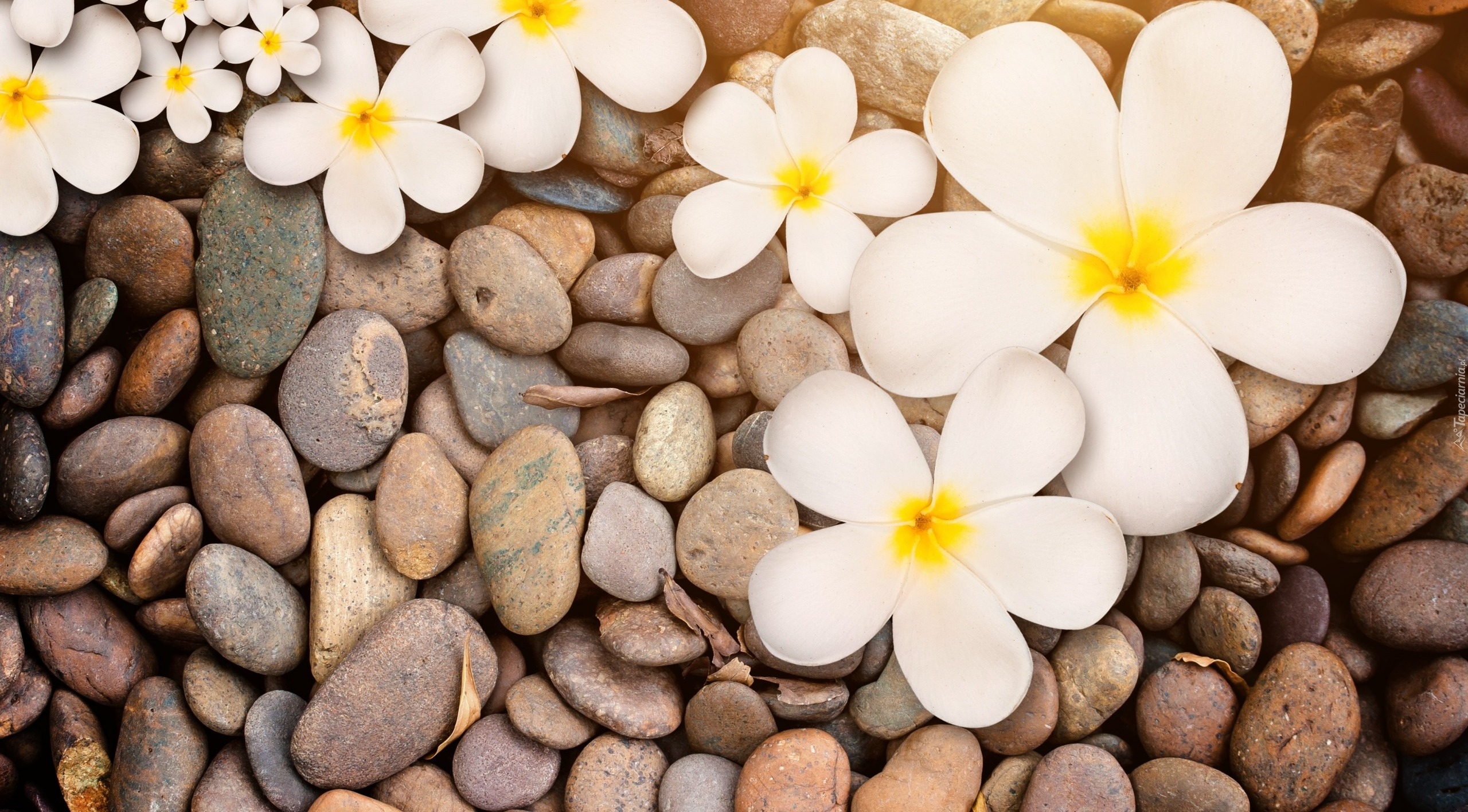 Edytor tapety: Kwiaty plumerii na kamieniach