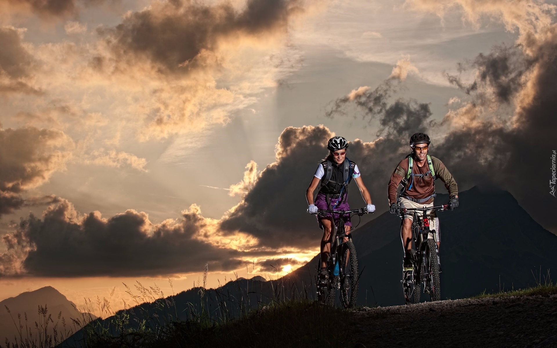 Edytor tapety: Mężczyzna i kobieta na przejażdżce rowerowej