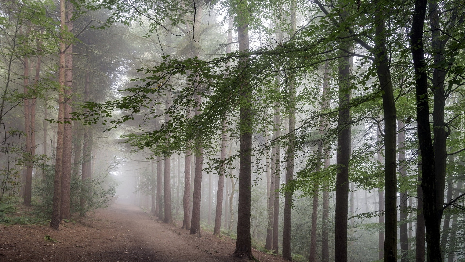 Edytor tapety: Zamglona droga przez las