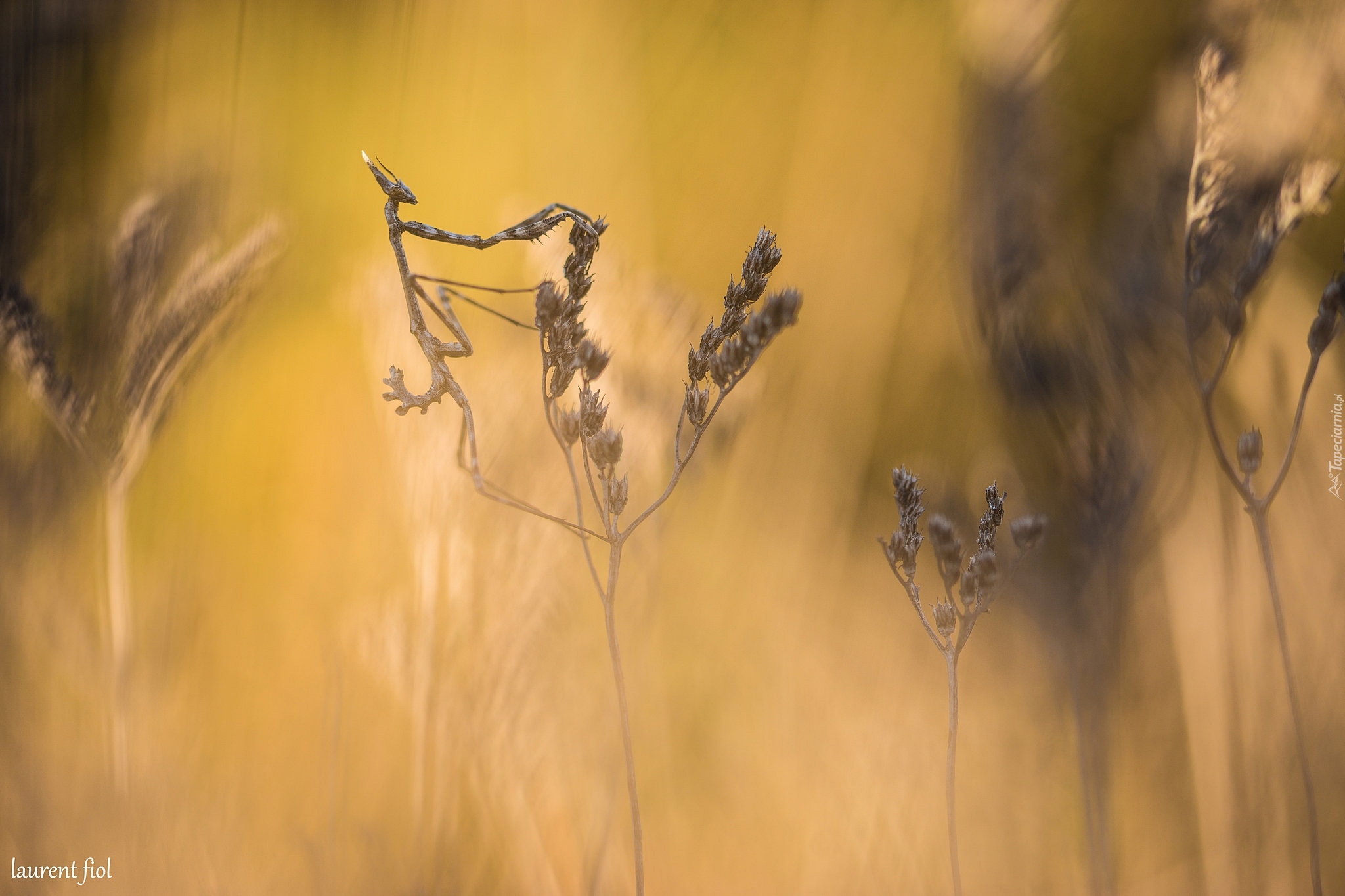 Edytor tapety: Modliszka na uschniętej trawie
