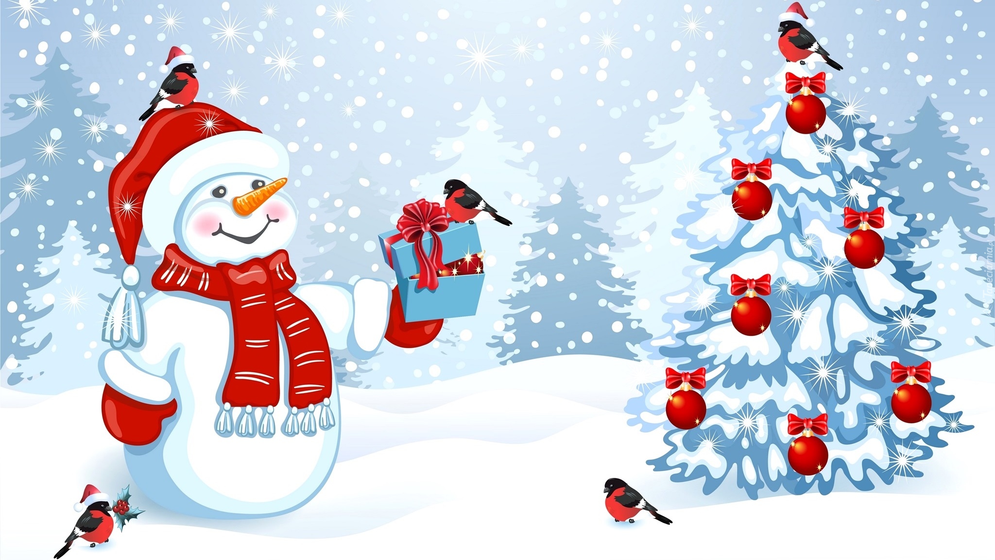 Edytor tapety: Grafika z choinką i bałwanem w czapce