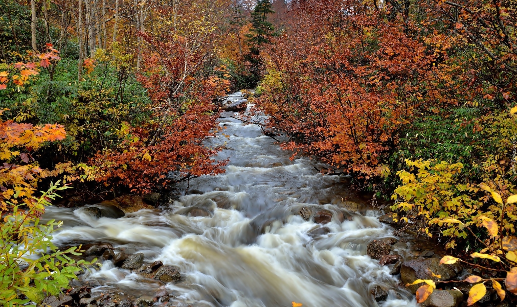 Edytor tapety: Rwący potok jesienią